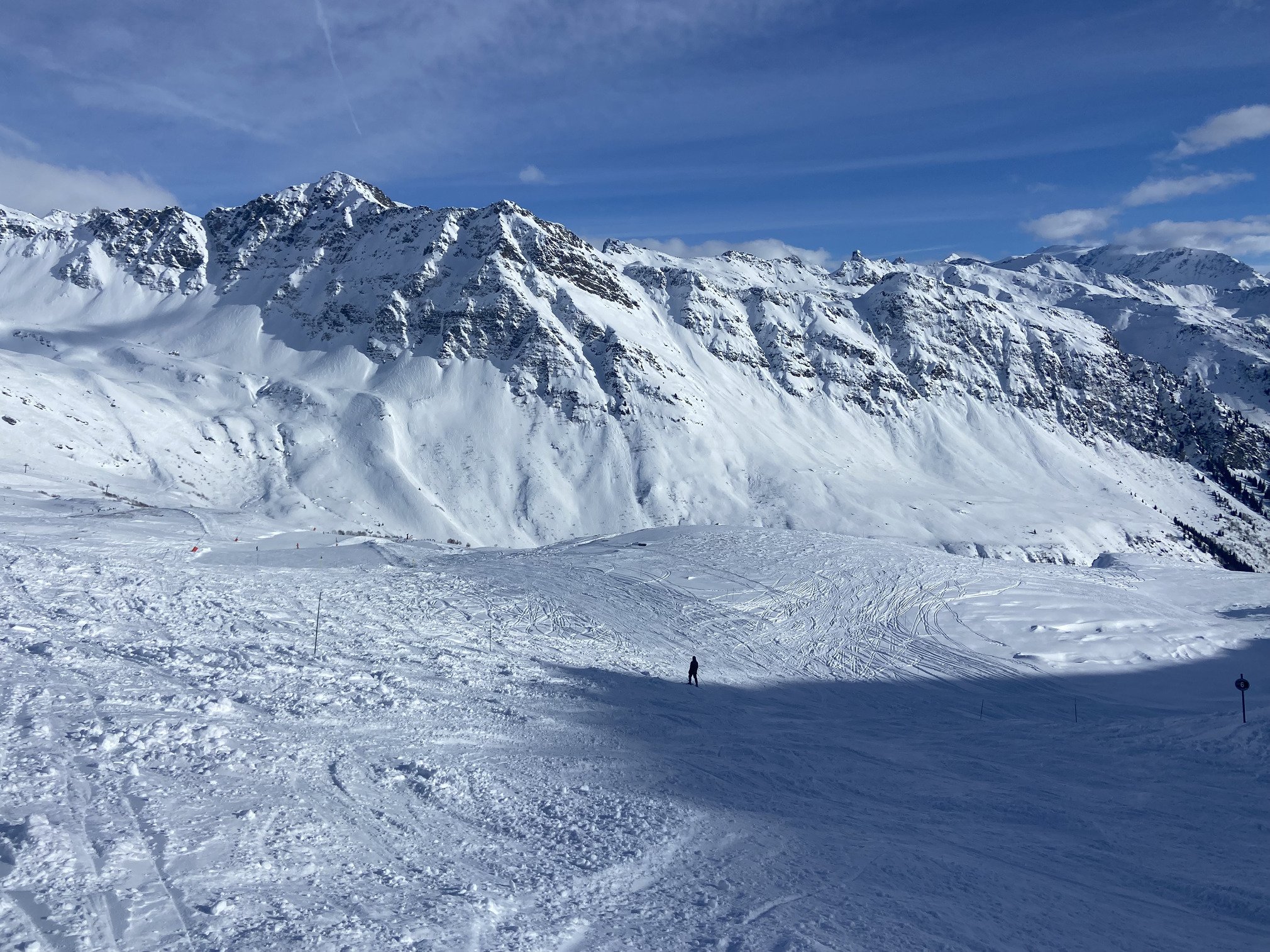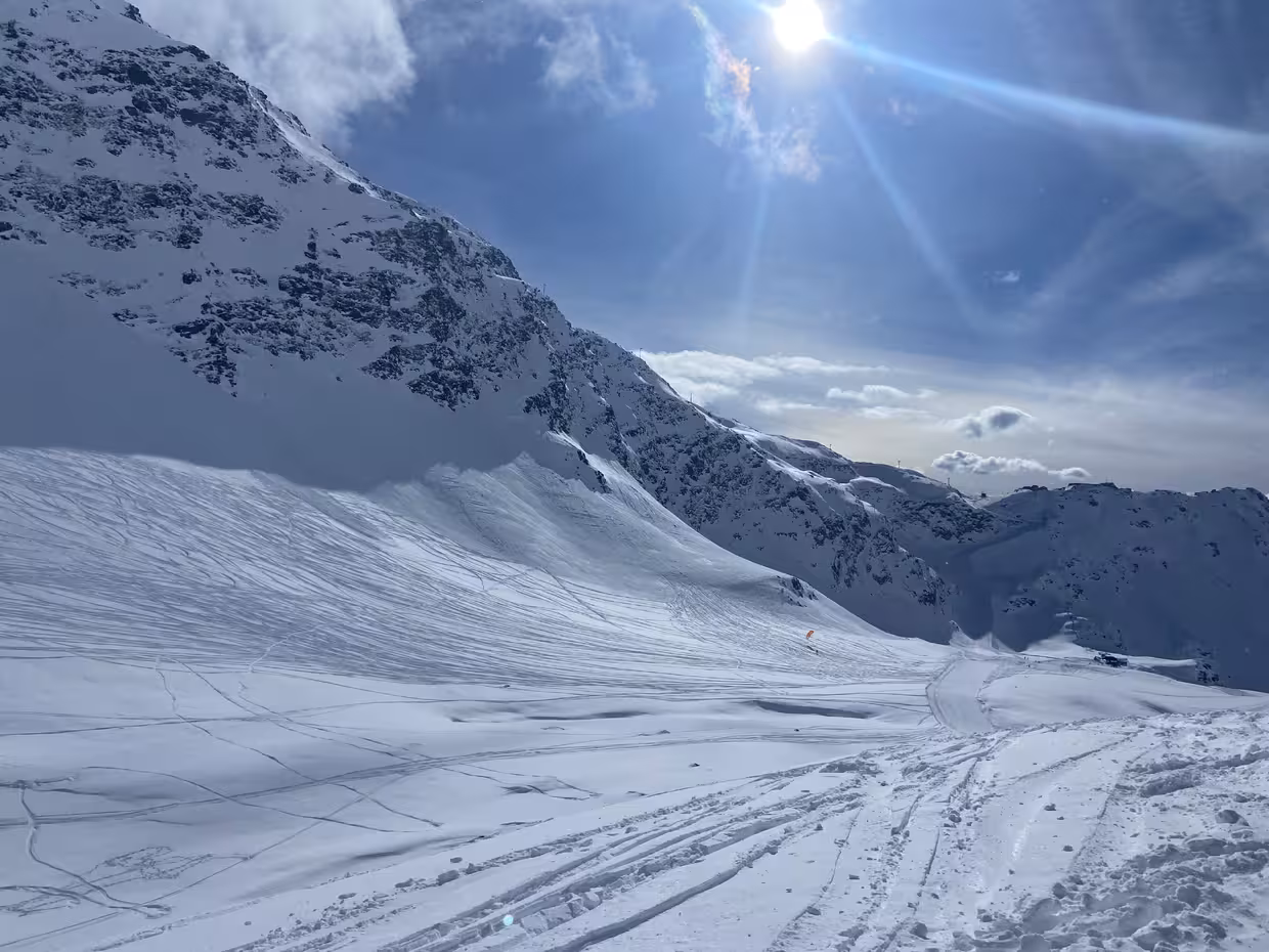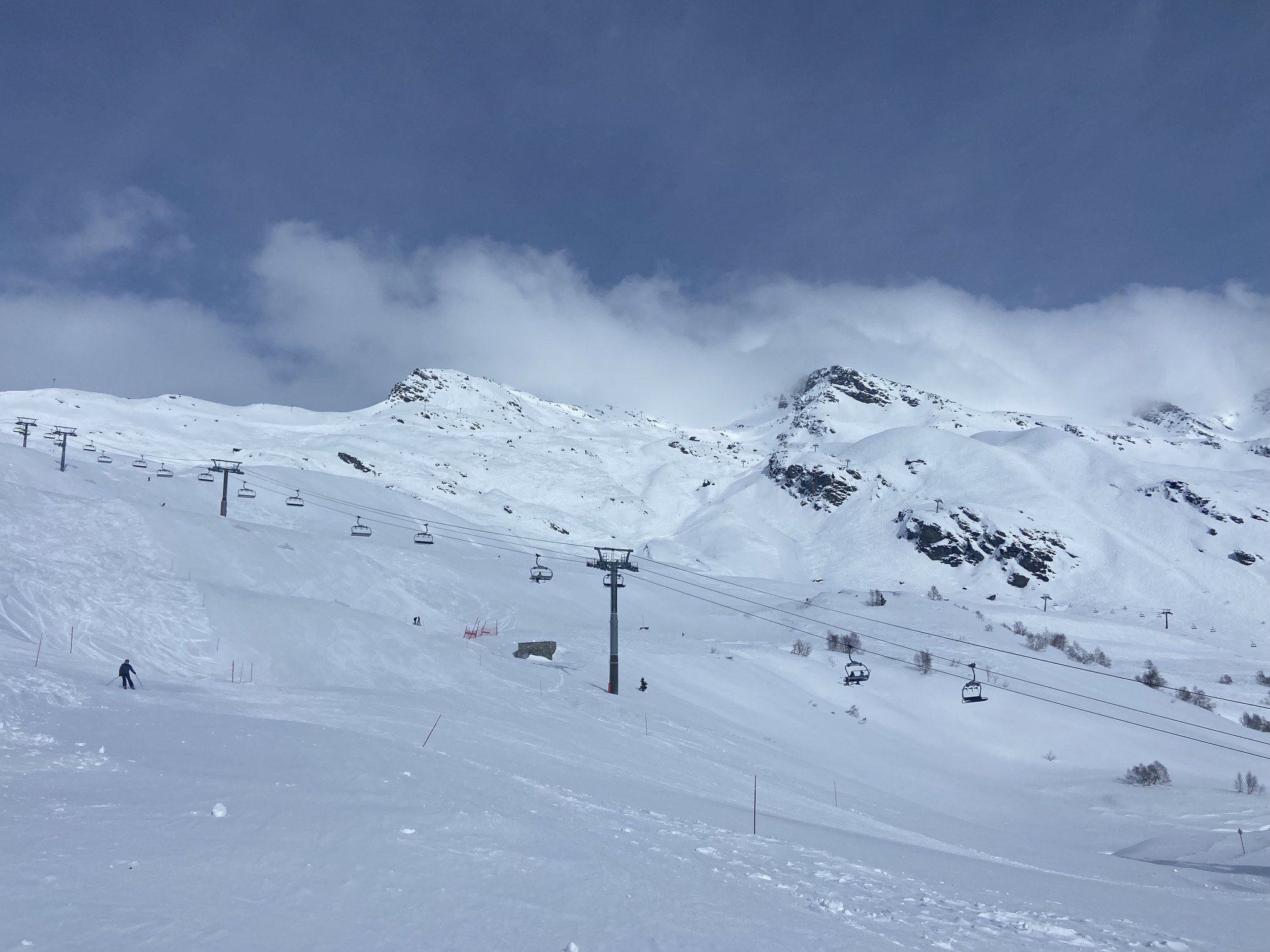 On a fait une tentative de bascule du côté de la Thuile en Italie mais une fois arrivés au sommet du TK Bellecombe, les gros nuages nous ont dissuadés de poursuivre, on a préféré retourner du côté de la Rosière, où le soleil était très généreux tout l’aprem, choix judicieux ☀️ Cerise sur le gâteau : la neige est restée très bonne toute la journée.