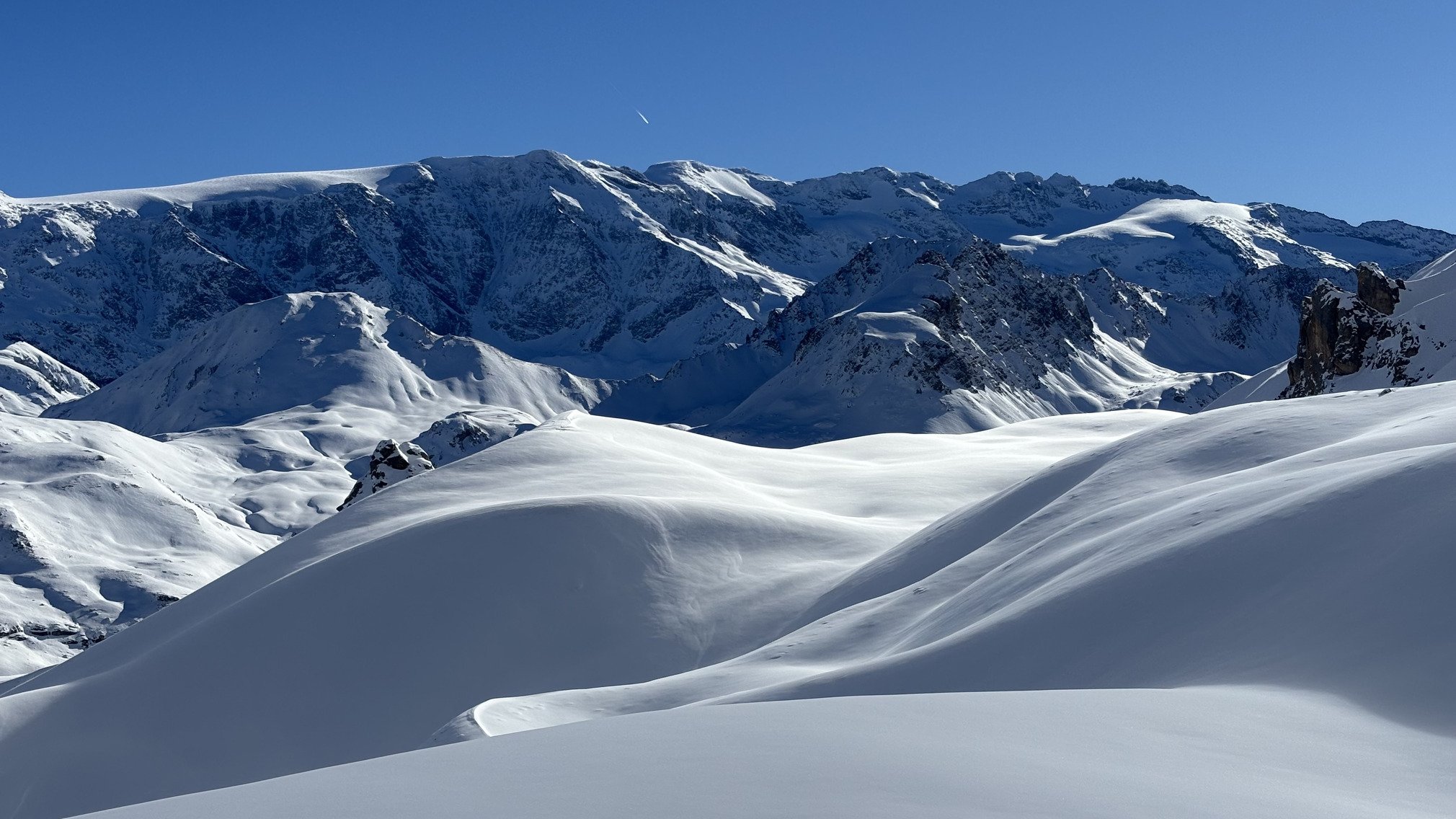 Arrivé au col direction les hors pistes habituelles de Chanrossa, d’autres avant moi avaient eu cette idée mais y’a encore bien de la place pour s’amuser.
