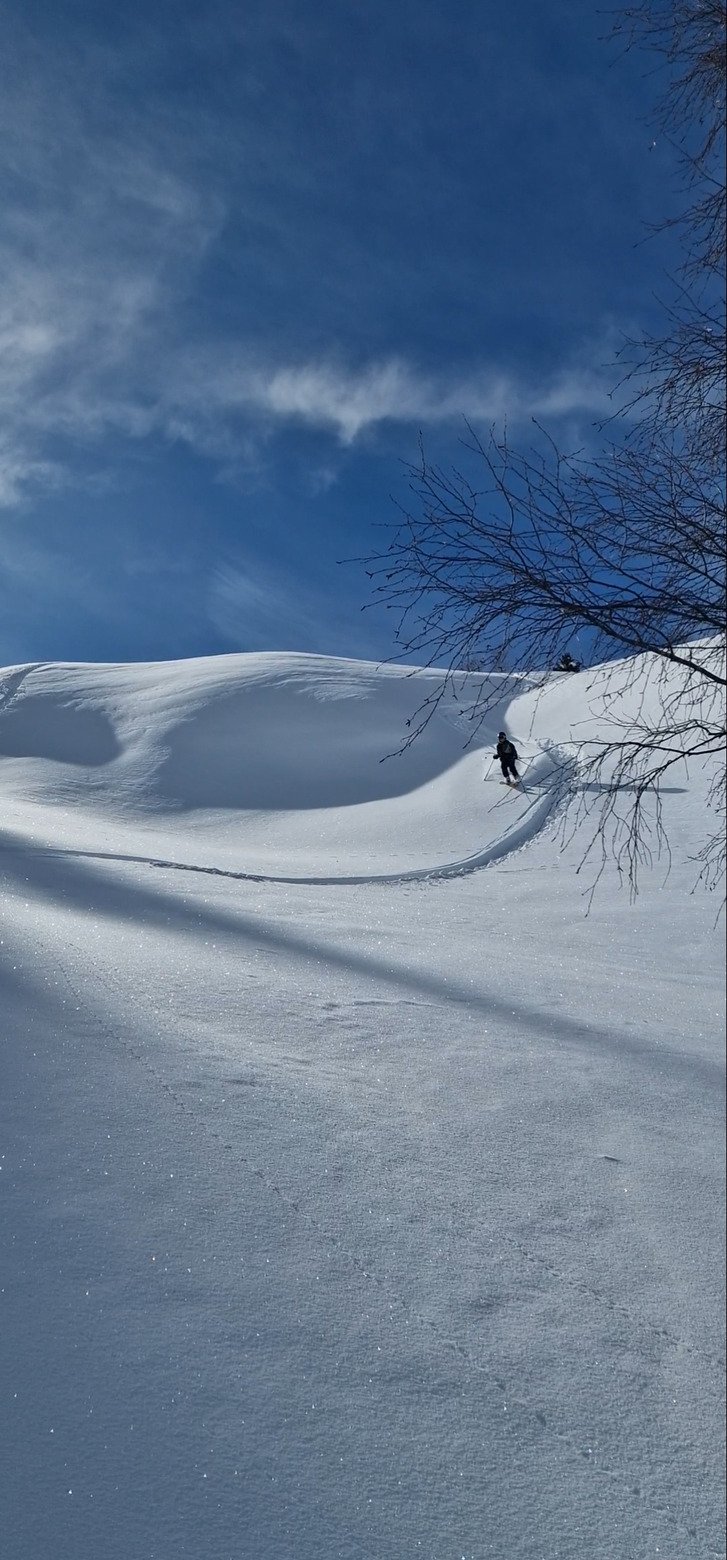 Une 20aine de poudreuse sur fond compact proche des pistes, une bonne visibilité même jusqu'au milieu de l'am, les vacances commencent bien. Jusqu'à 120cm restés frais côté GR (voir photo...)Au top.