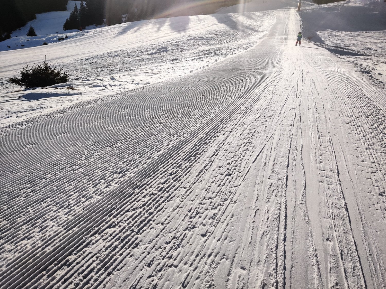 Ce matin il n'y a pas un chat, la neige est au top sur piste malgré 2-3 cailloux que j'ai retiré pour vous (ma bonne résolution : être enfin gentil). Côté Super Collet il y en a moins que sur le secteur Pré Rond, d'ailleurs.
