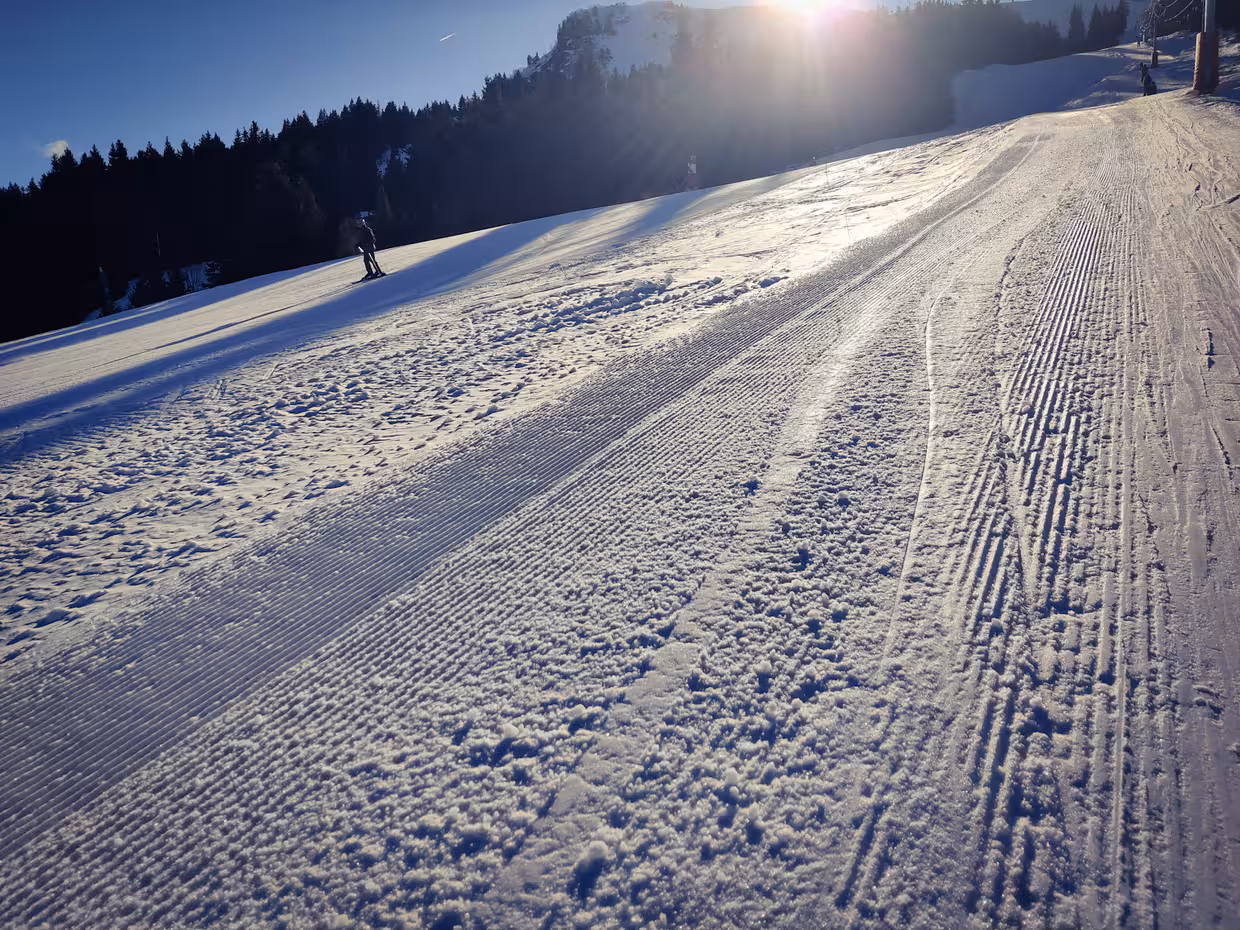Bon travail des pisteurs qui ont fait une station skiable sur piste malgré l'épaisseur de neige faible.