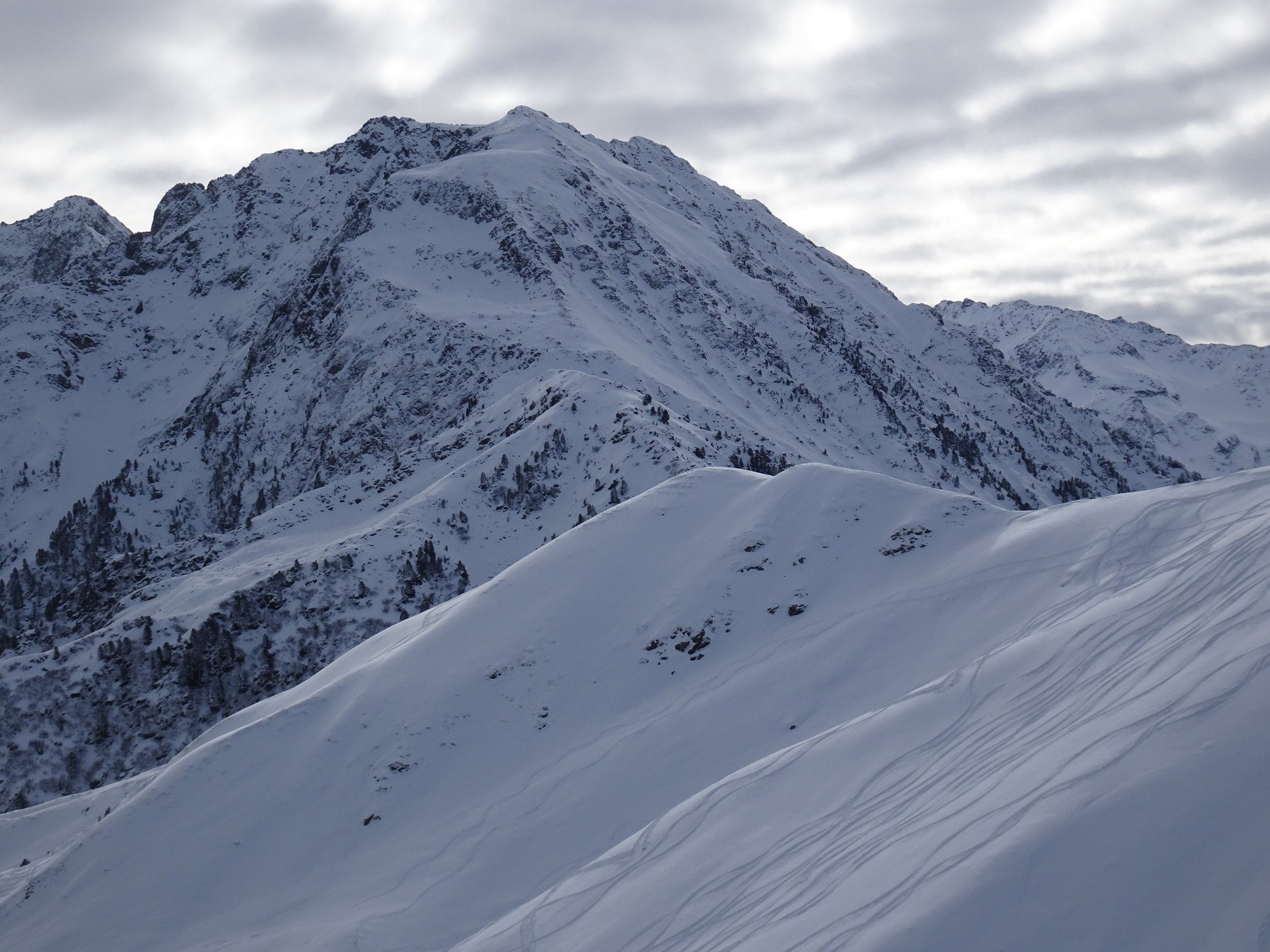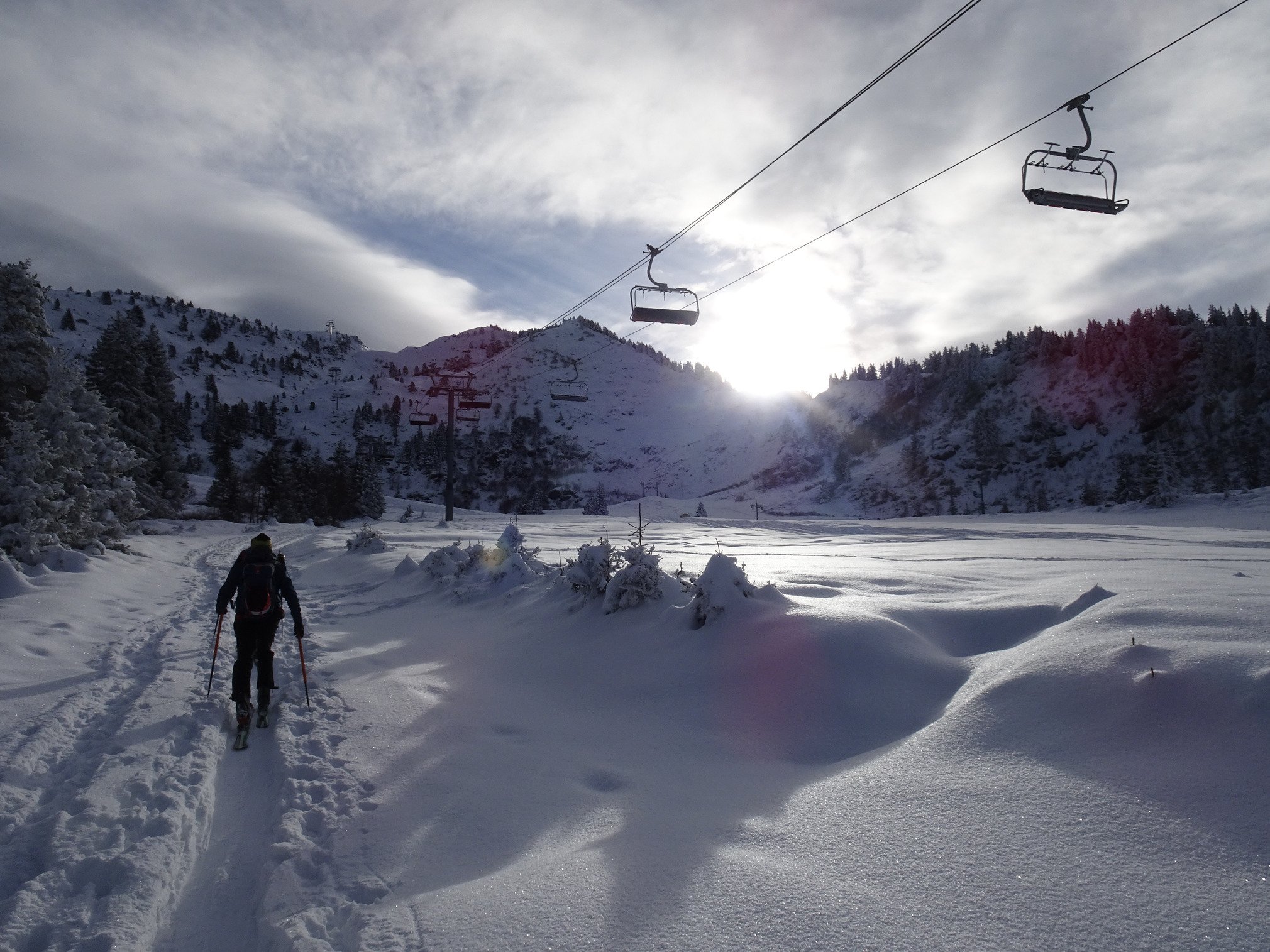 C'est quand même bien tracé. Mais les 60 cm de poudre, toute légère, sont encore là pour faire quelques descentes dans ces combes. Il y a toujours ce petit frisson particulier sur les premiers virages de la saison.