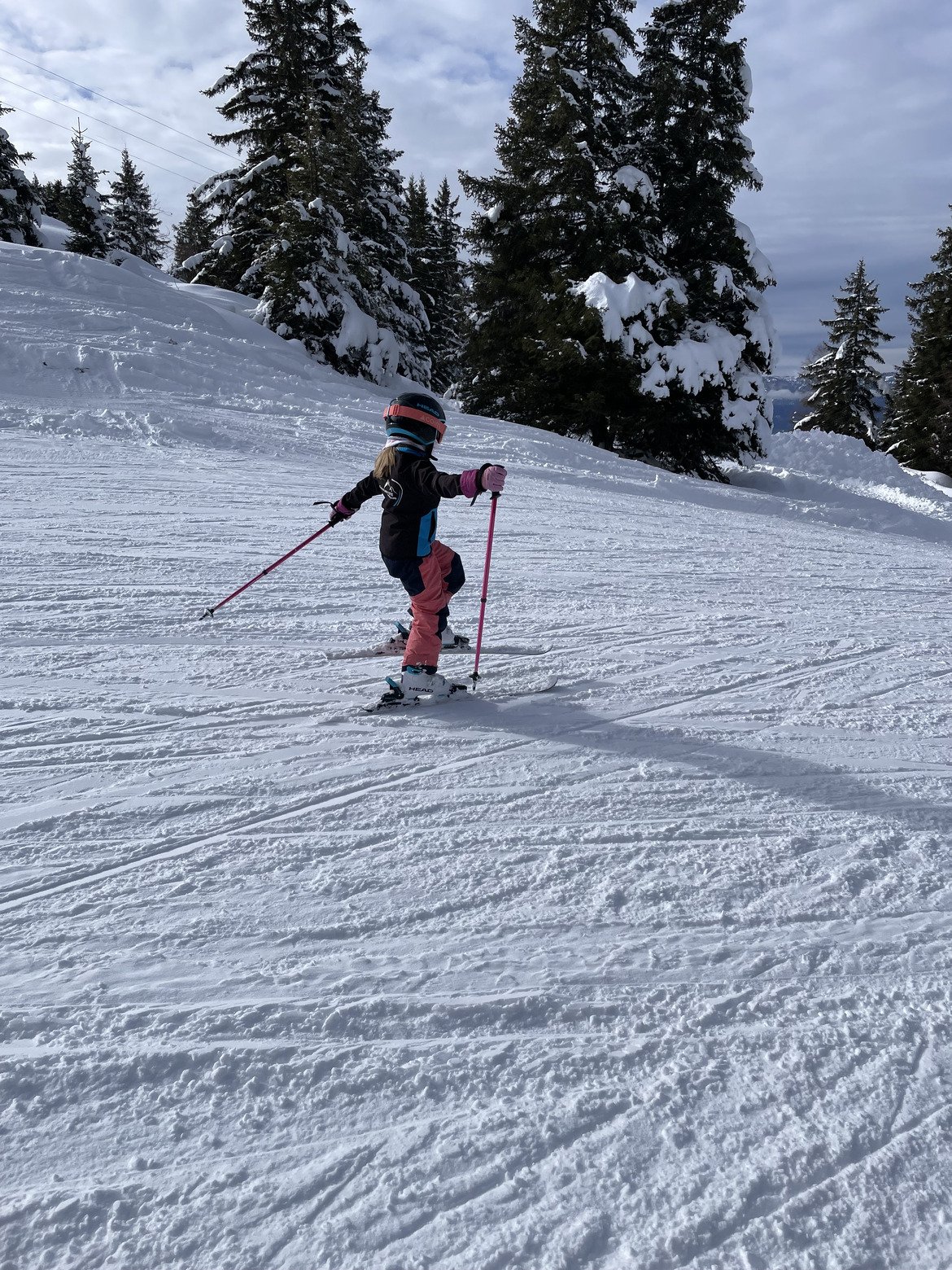 On a pu tout expĂ©rimenter (cf vidĂ©o!) : des passages +-secrets avec de la neige encore lĂ©gĂšre, des bosses et des box! (Bravo le collet pour ce mini Park), de la vitesse (88km/h affichĂ© au compteur pour minimoi pour un record du jour Ă 104, on nâa pas dĂ©mĂ©ritĂ©!), et on a fini par sâentraĂźner pepouz au switch sur une zone bien large, bien plane, bien visible quand une skieuse qui regardait derriĂšre elle a percutĂ© ma fille ⊠heureusement beaucoup de peur et peu de mal. Jâai hĂ©sitĂ© Ă laisser cette partie de la vidĂ©o mais je crois quâil est important de rappeler lâimportance de maĂźtriser sa vitesse, son niveau et de ne jamais relĂącher sa vigilance sur les pistes.