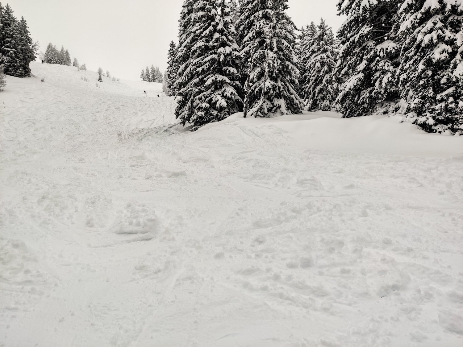 Bon c'est "traffoled" de partout, mais on va pas se plaindre... Y'a de la neiiiige!