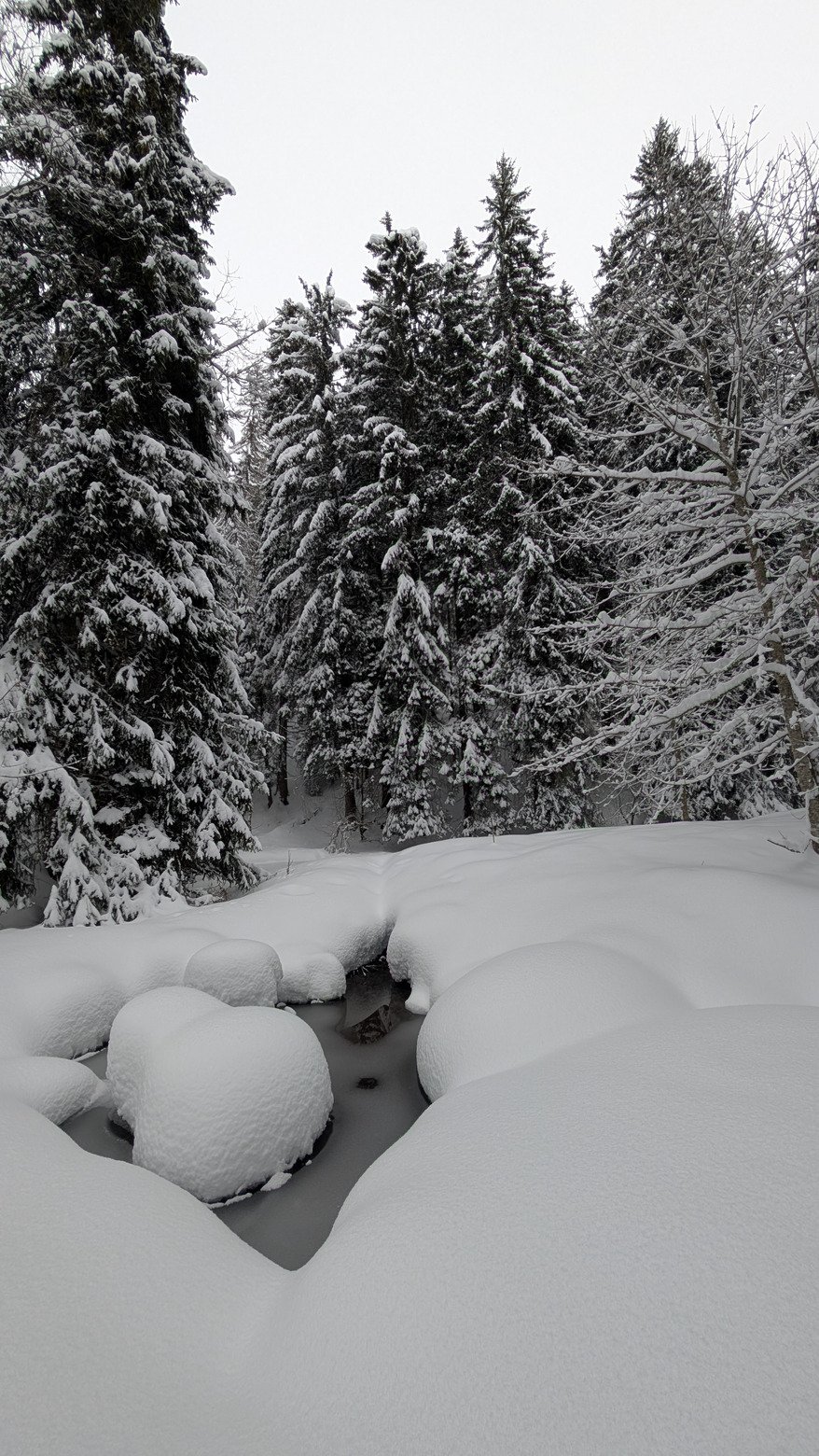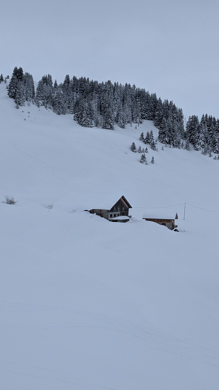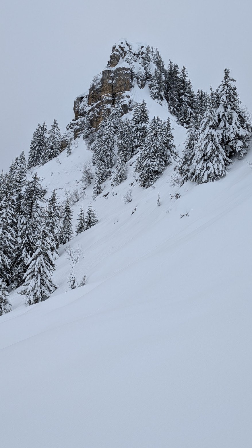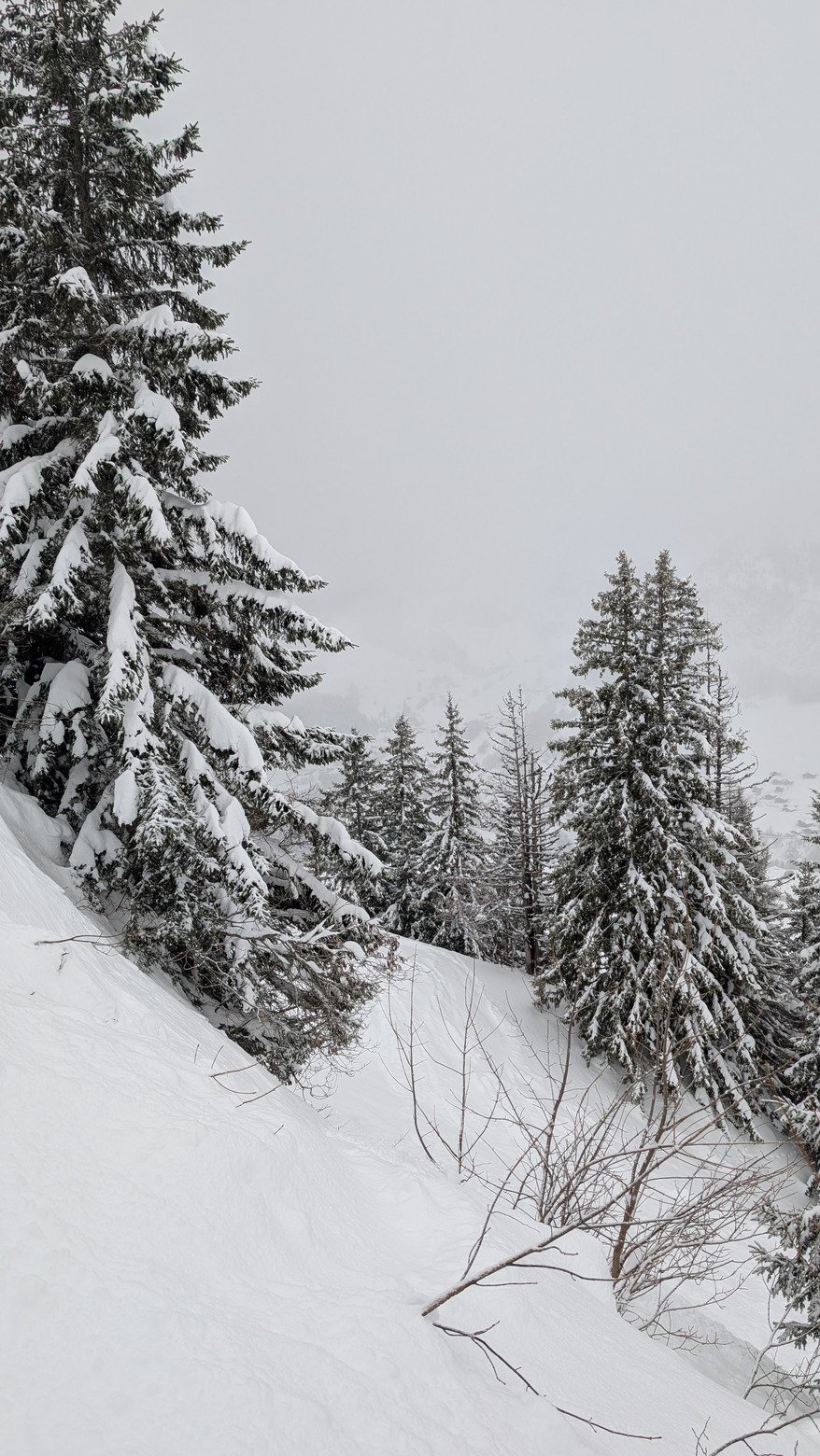 Visibilité limitée en altitude, et tk des Arces ouvert : L'occasion idéale pour tracer les bois et clairières de ce versant si rarement en condition.