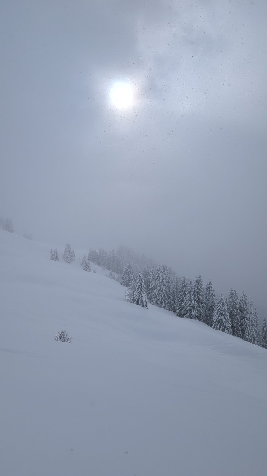 La veille au soir, ça annonce tout de bon avec 15cm tombés dès 1000m mais dès l'aube, les indices ne trompent pas : brouillard, 1°c, route noire en bas.