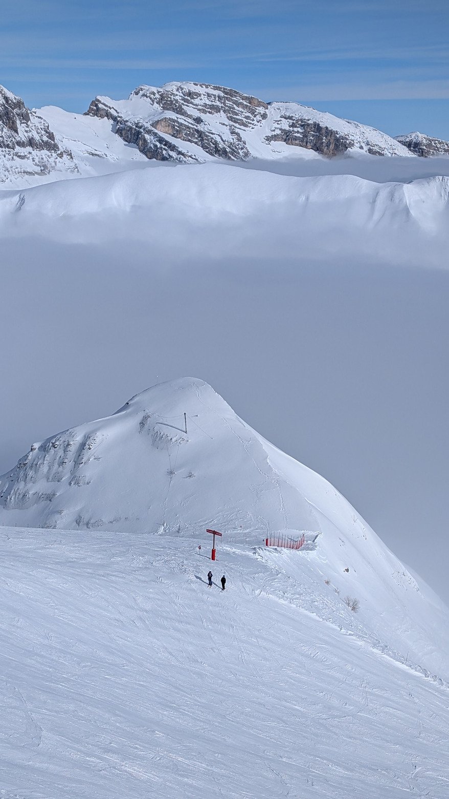 Heureusement, les nuages bas ont laissé le soleil sur les hauteurs du domaine... Tous le monde se concentre sur le bas à l'heure du début des cours ESF ( tellement prévisible ). Alors on profite de la douceur du domaine sur l'almet, le lachat.. et quand tout le monde prend l'ascenseur, hop c'est l'heure d'enchaîner les Envers, faire un tour à la Joyere tellement vintage et agréable.