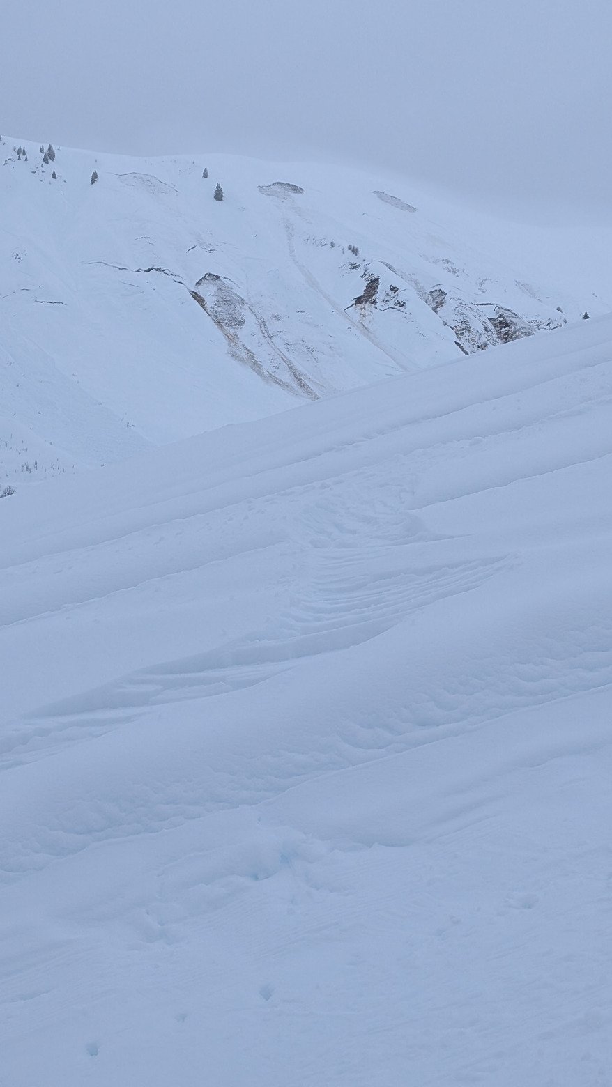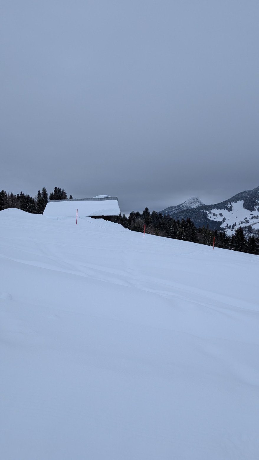 On profite du chasse-croise des vacanciers pour tracer un domaine redevenu calme après la petite folie de la veille. Quelques virages entre deux couches nuageuses, une neige toujours aussi infâme sous 1600m en dehors des pistes mais franchement sympa sous le sommet du Lachat ( Freeride ).