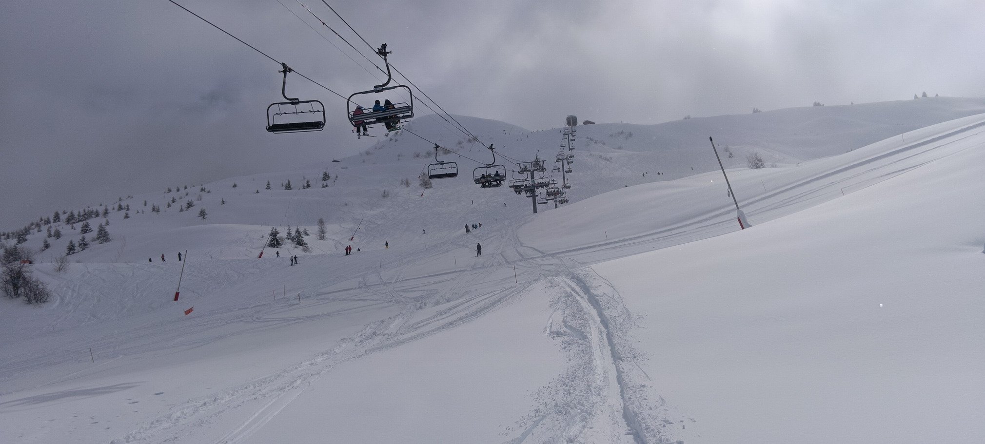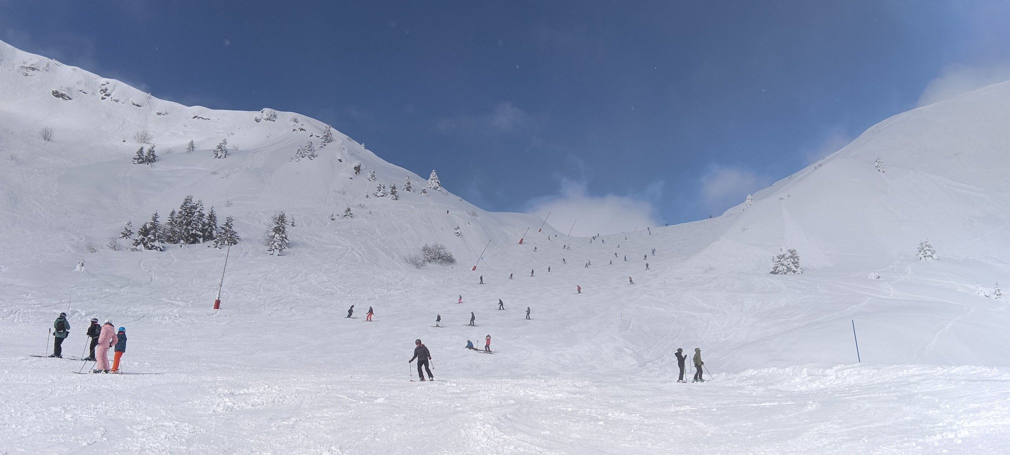 ... pour que les vacances soient finies ! En effet, c'Ă©tait blindĂ© de monde aujourd'hui, et ça a clairement gĂąchĂ© le plaisir đ„Ž. Pas moyen de se garer vers les tĂ©lĂ©cabines malgrĂ© une arrivĂ©e vers 9h, obligĂ©s de monter au Chinaillon. On a fini en navette, aussi blindĂ©e qu'un mĂ©tro aux heures de pointes. Et aux remontĂ©es, 10 Ă 15 minutes de queue Ă peu prĂšs partout (sauf au TS des Annes et TK Arce), les gens un peu Ă©nervĂ©s qui se marchent sur les skis. Bref, nos amis parisiens ne devraient pas ĂȘtre trop dĂ©paysĂ©s pour leurs vacances qui dĂ©marrent demain đ