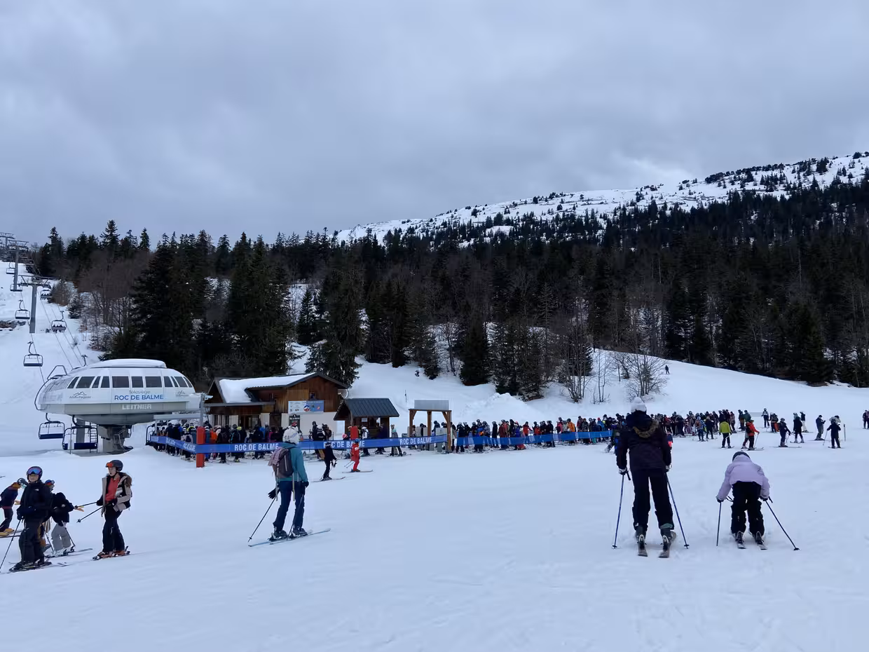 20 min plus tard, me voilà prête à savourer les pistes noires / rouges du domaine mais j’ai été ralentie dans mon élan par des queues monstres aussi bien au TSD qu’au TK. Je n’avais jamais vu des files aussi longues à Margériaz 😅 Il fallait bien attendre entre 15 et 20 min, et encore, grâce à la file pour skieurs solos au TSD.