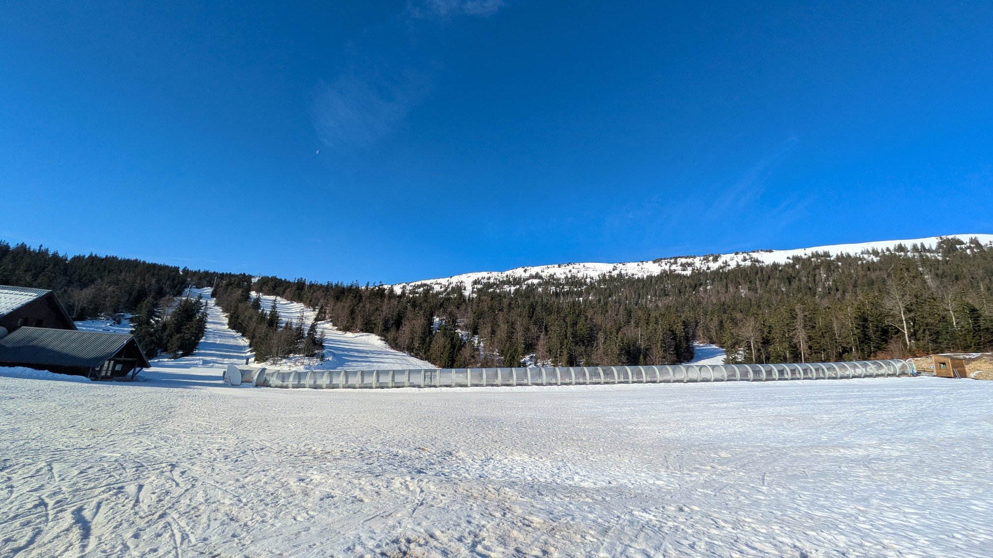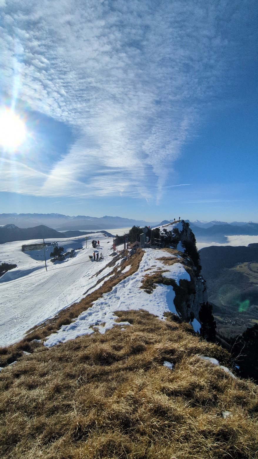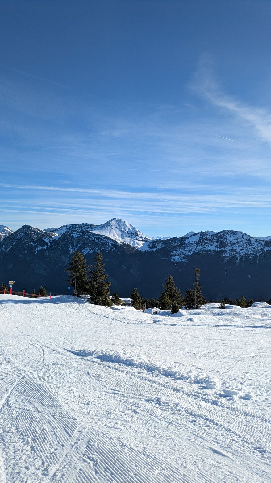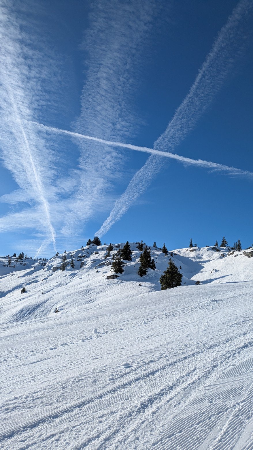 Les pistes sont en cours de préparation, avec une neige bien présente mais durcie par la pluie le gel/dégel quotidien, ça décaille vers la fin de la matinée (que je n'ai pas attendue, les chaussettes sont donc bien descendues 😅)