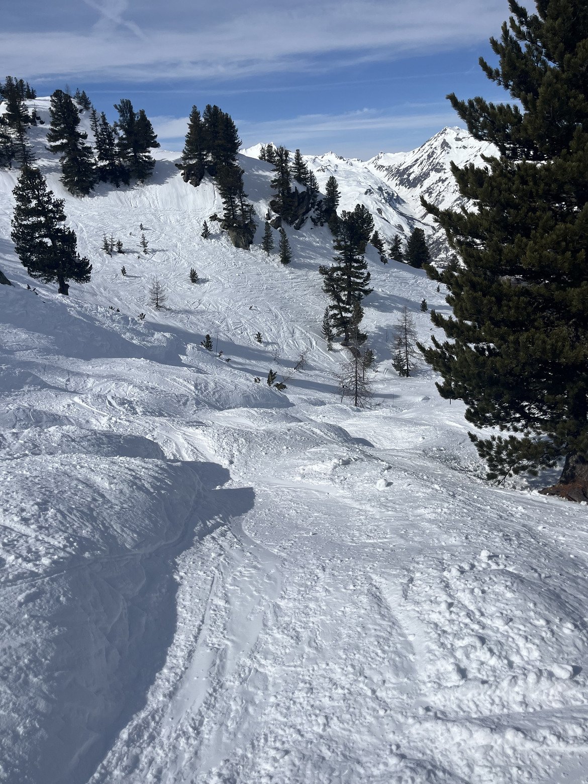 Une deuxième journée aux Arcs après celle de samedi ; il y a cependant un peu plus de fréquentation que ce week-end. Le soleil est radieux. Les pistes sont bonnes après quelques heures, le matin. La station est vraiment intéressante avec ses domaines bien séparés, qui permettent de naviguer entre plusieurs endroits aux paysages différents.