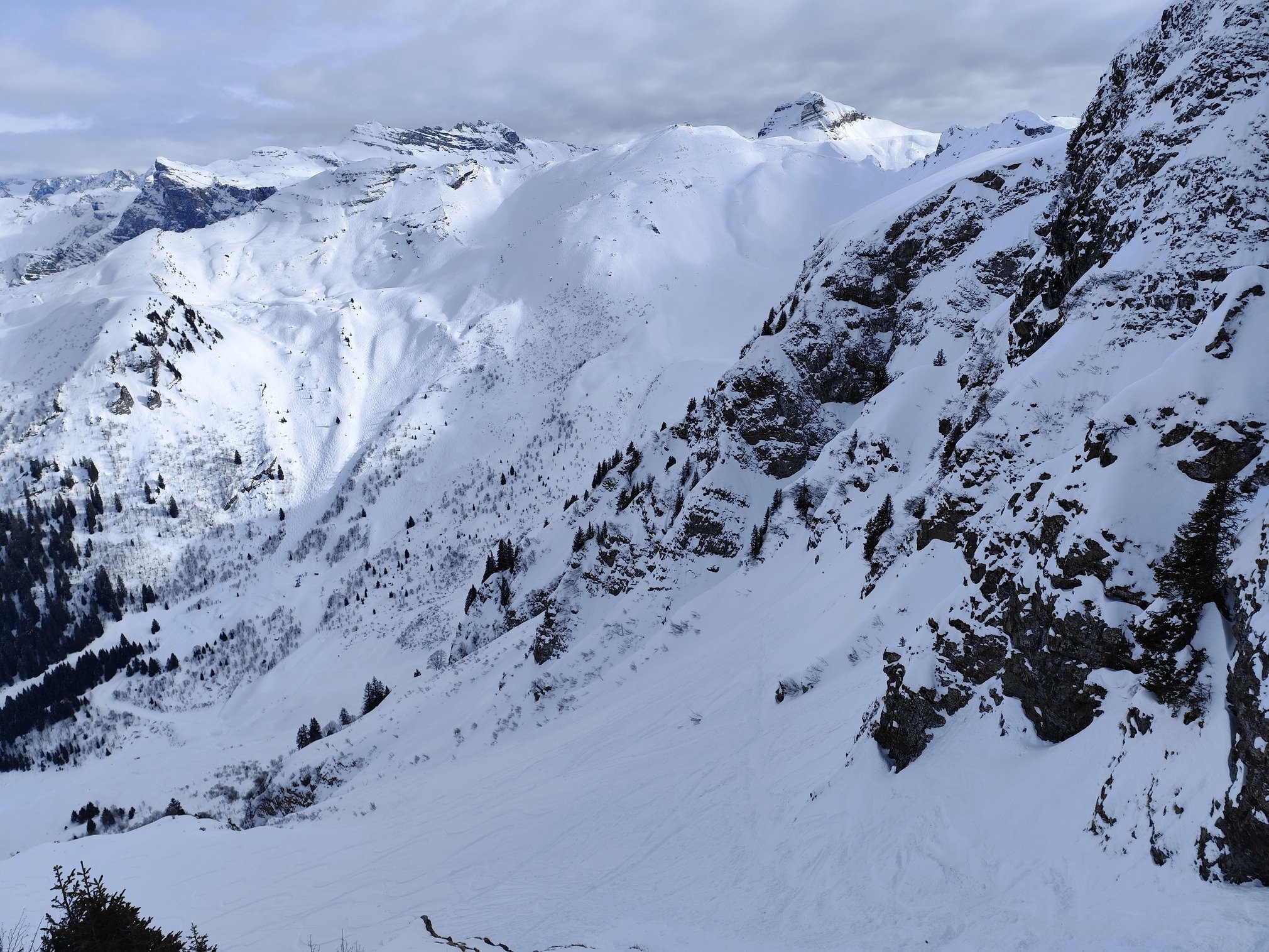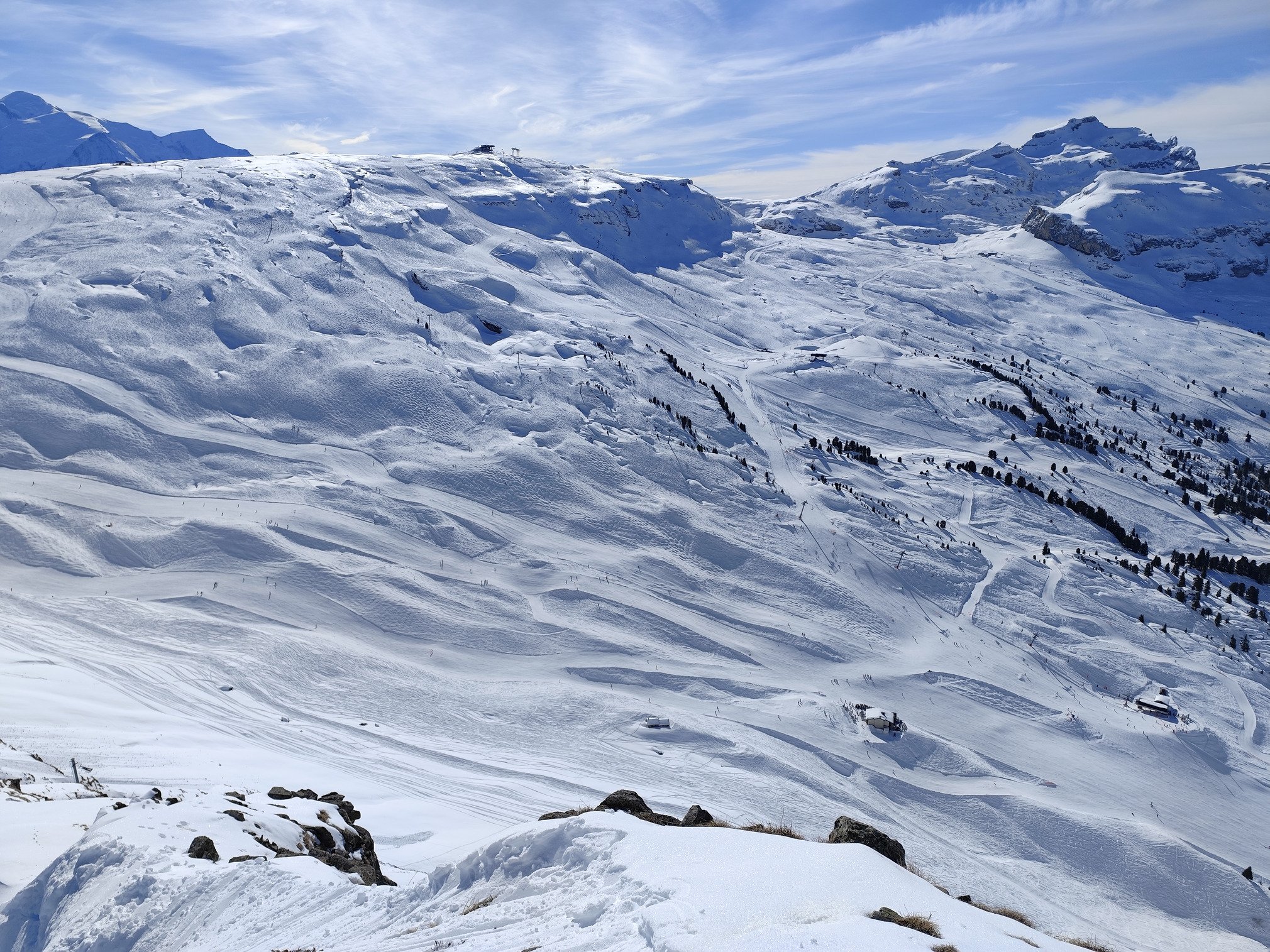Par contre, certaines faces ouest ont pris le soleil puis regelĂ©. Du coup c'est croĂ»tĂ© et donc beaucoup moins agrĂ©able Ă skier đ