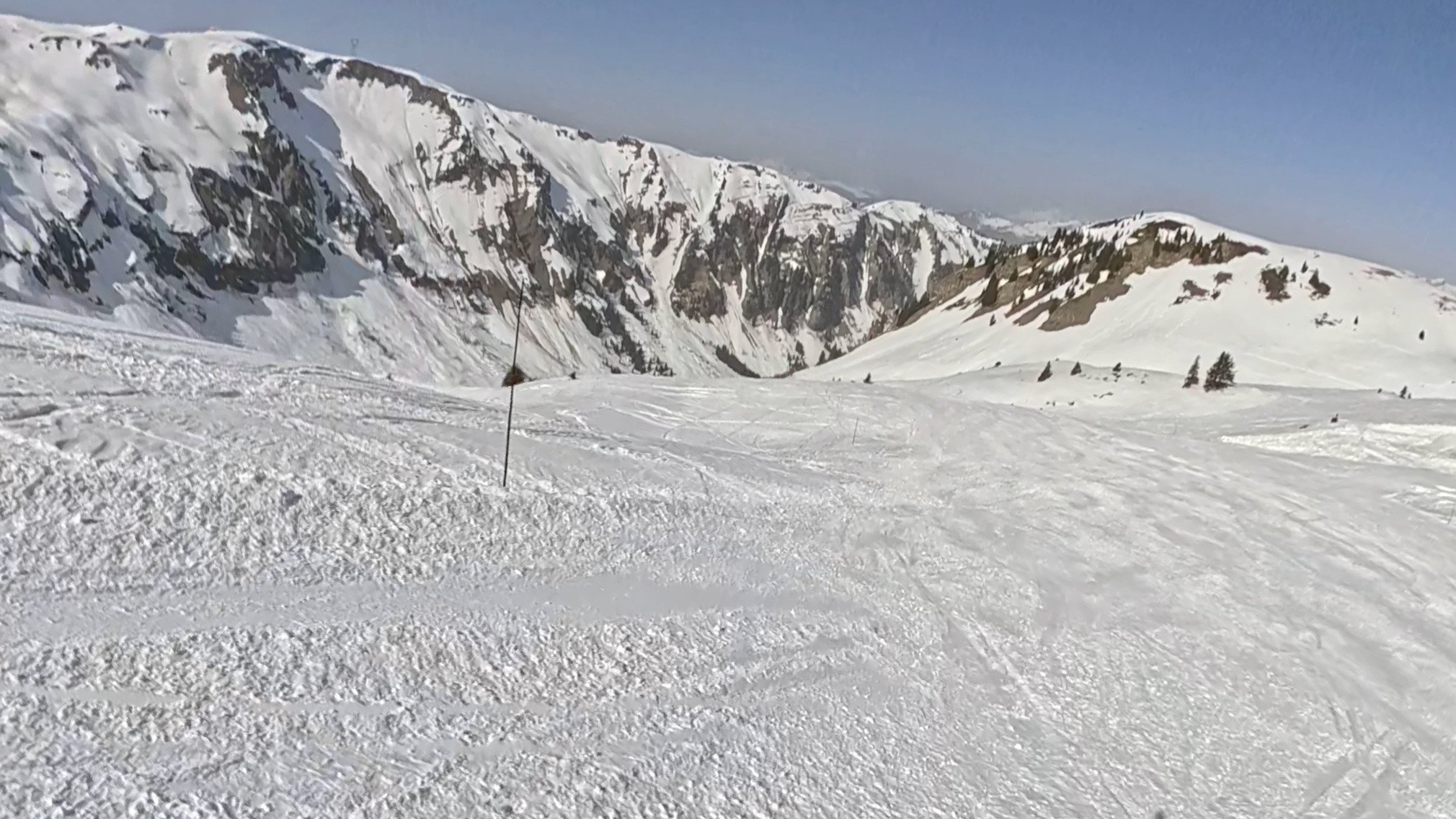 Pourtant sur Flaine, il y a encore du très bon, comme sur démon (photo 2) ou lapiaz (photo 3). Et puis la combe qui ne dit pas son nom ouvre, neige froide quasi jusqu'en bas (à 13h), mais qui scotchait aux skis, très bizarre.