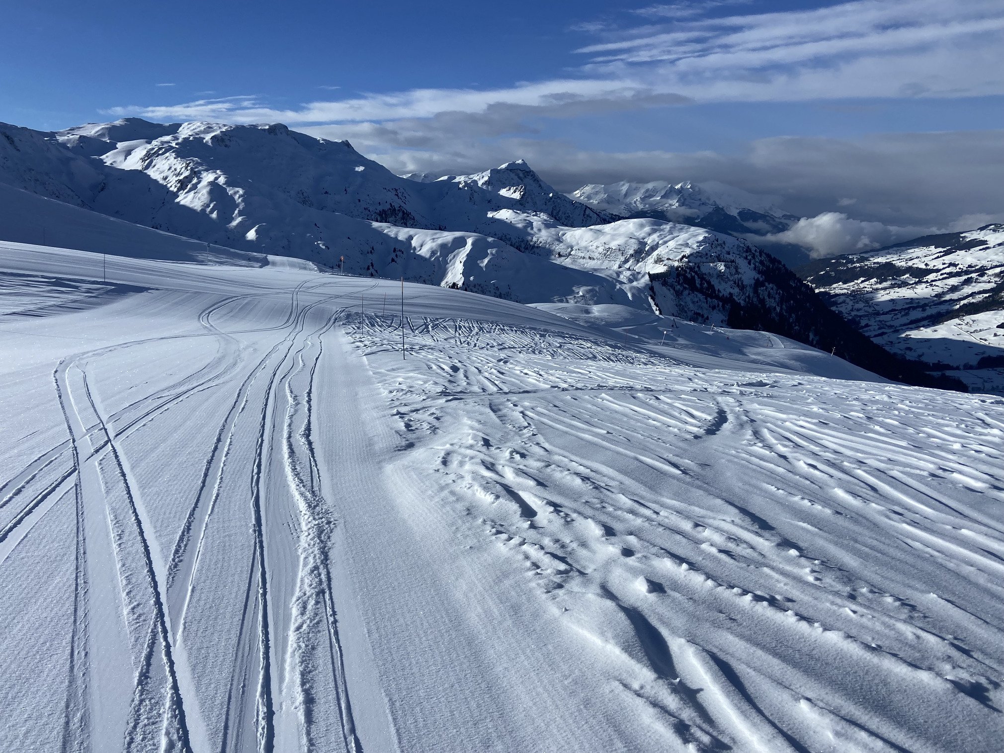 La neige est globalement bonne voire très bonne sur piste. On a démarré du côté de Hauteluce. Les pistes bleue et rouge desservies par le TS de Plan étaient un peu trop dures à min goût mais celles du côté du TS du col étaient top. Neige plus douce et pistes au soleil. Cerise sur le gâteau : il n’y avait presque personne le matin.