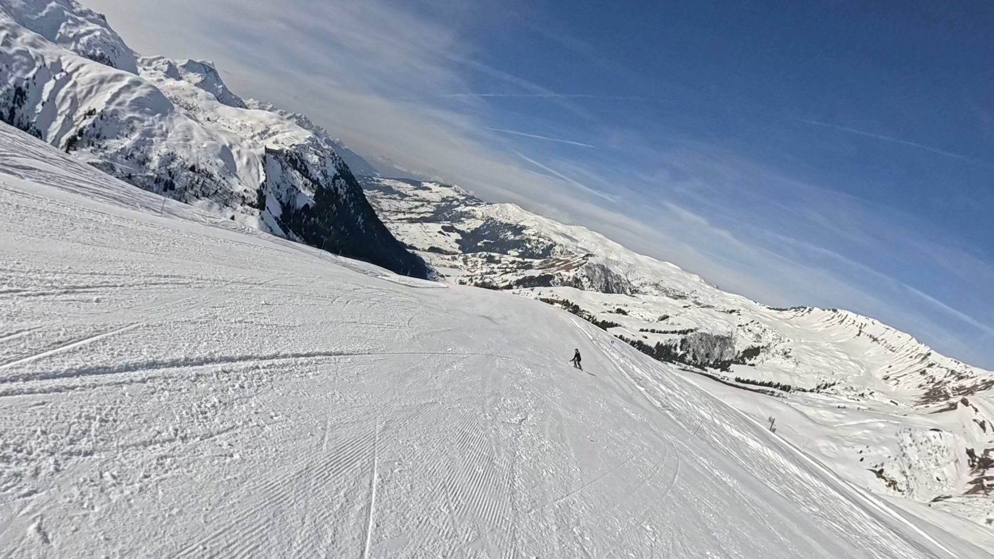 Veleray ouvert, et la piste Rebans ouverte jusqu'à Grevettaz, ça faisait longtemps. A 13h elle était bonne en haut et plutôt soupe en bas.