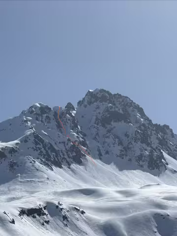 Direction donc ce secteur. Je monte vers le col de la Fenêtre, puis je longe l’arête avant d’arriver au col nord de la Cicle (je crois). Finalement, je fais demi-tour : un petit couloir aperçu une cinquantaine de mètres plus bas n’avait que deux traces et semblait bien plus intéressant.