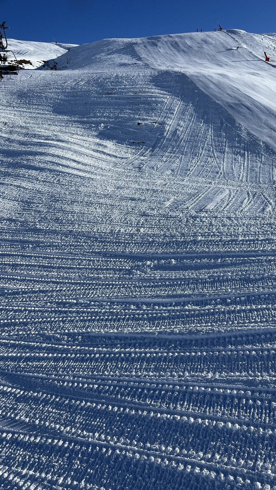 - 2/5 pour la moitié basse, neige dure (et fine...) dès qu'il y a de la pente mais loin d'être inskiable. Aux Contas pas de cailloux qui traînent, mais de petites mottes de terre sous 2000m 😅