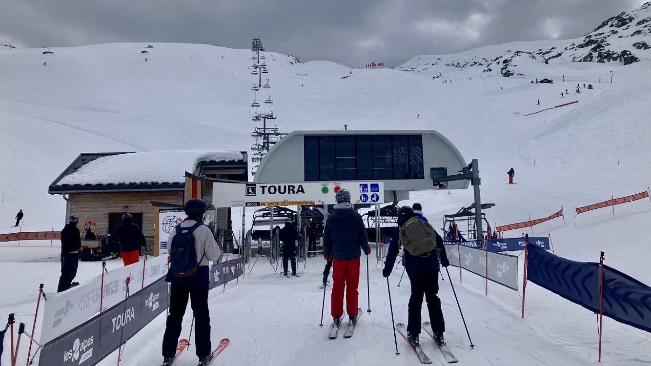 La neige est trĂšs bonne. Ă la Toura, le tĂ©lĂ©siĂšge est libre dâaccĂšs. Descente par la Toura jusquâau tĂ©lĂ©ski de lâenvers, ça carve.