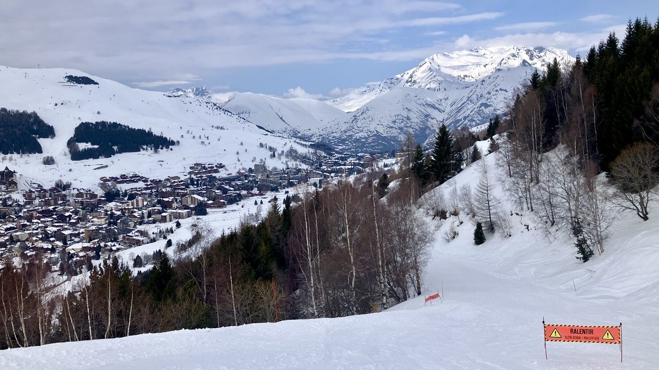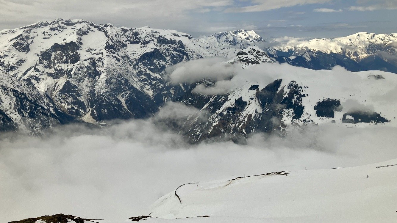 Puis descente par Bellecombe 3 pour rejoindre le tĂ©lĂ©siĂšge et monter sur le super diable. On descend par les vallons jusquâĂ la station. La neige est parfaite, juste quelques nappes de brouillards sur le haut.