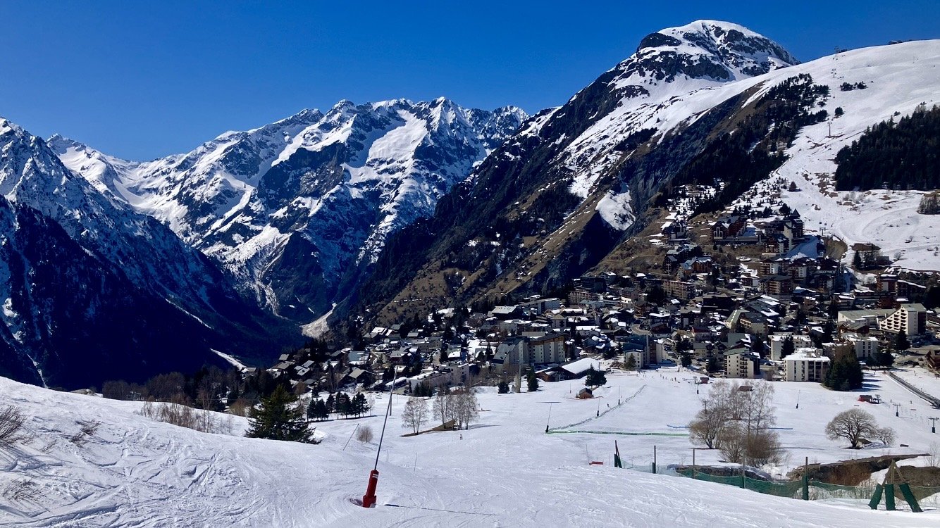 Sur Vallée Blanche c est fluide. Direction SuperVenosc, le mur d’arrivée est décaillé, nickel. On fait ensuite la Bleue et 2 rouges sur Vallée Blanche avant de traverser. Encore pleins de neige sur ce Versant, et bien douce à cet heure ci. Il faut profiter, il fermera le week-end prochain.