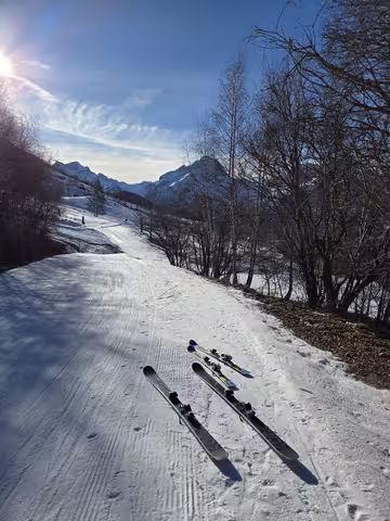 Mini blinquette, fait du ski joering au Schnepfenried, puis du papa joering et maman joering régulièrement : ski au pied, ballade en famille tirée par un bâton de ski.