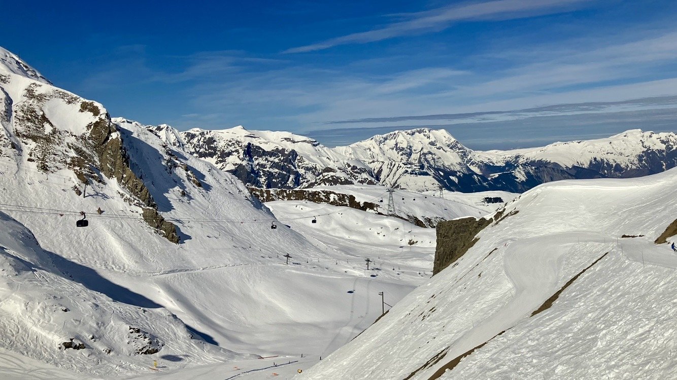 Direction les Vallons du diable, la piste est đ. Que de beaux panoramas sur cette piste! Et cette annĂ©e on est gĂątĂ©e, car câest pas si souvent quâelle reste top Ă cette Ă©poque.