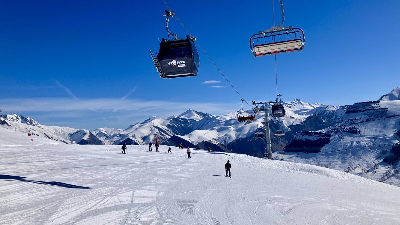 Je mets en route une application ski qui permet de retrouver des amis, et jâen vois un sur le domaine. Je pars Ă sa rencontre. A 2600, direction Pierre-Grosse par la bleue, dans le mur, tout lisse, ça filoche jusquâau tĂ©lĂ©cabine. En haut, il a un peu dâavance, alors la brĂšche, puis de nouveau la bleue des Gours, et je les retrouves, ils sont 4 , Ă Pierre Grosse.