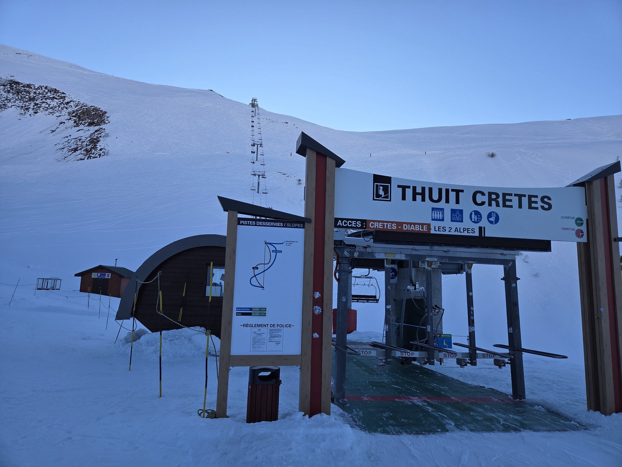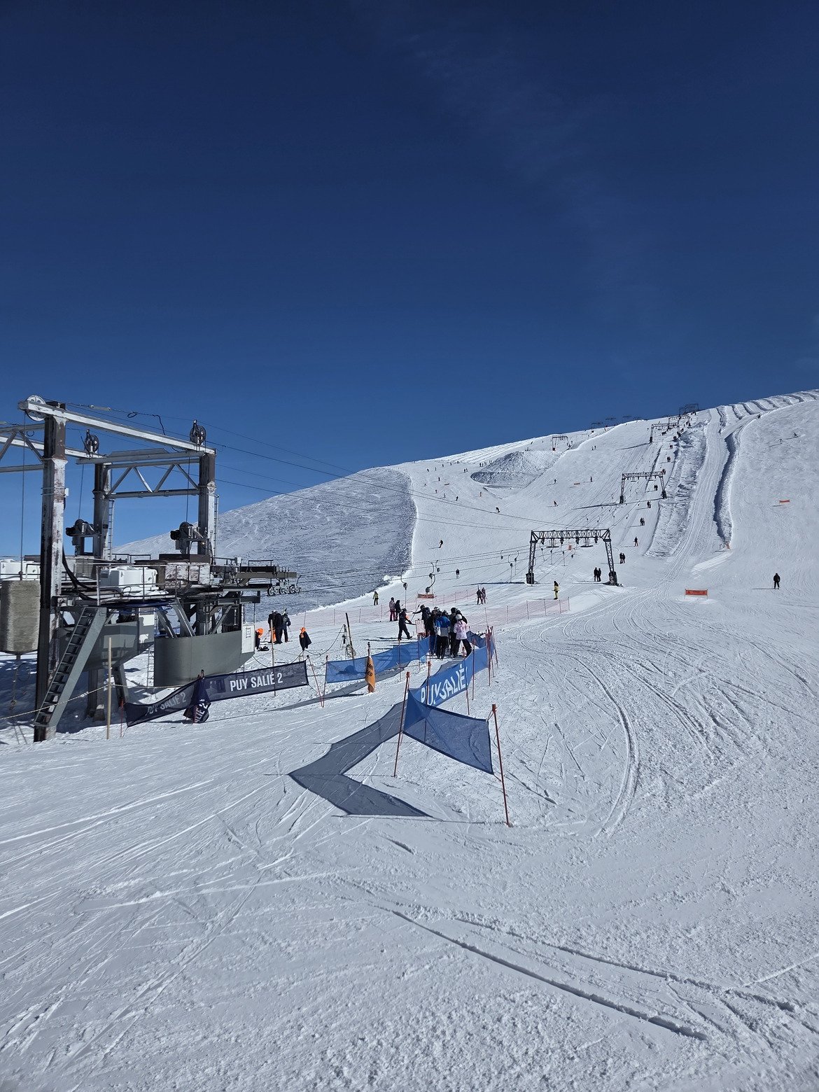 A l’intermédiaire on prends la deuxiéme cabine, puis on enchaine sur les pioches avec seulement 10 personnes devant nous. Comme hier on pousse un peu sur les batons pour retrouver la piste à gauche des pioches les plus à gauche.