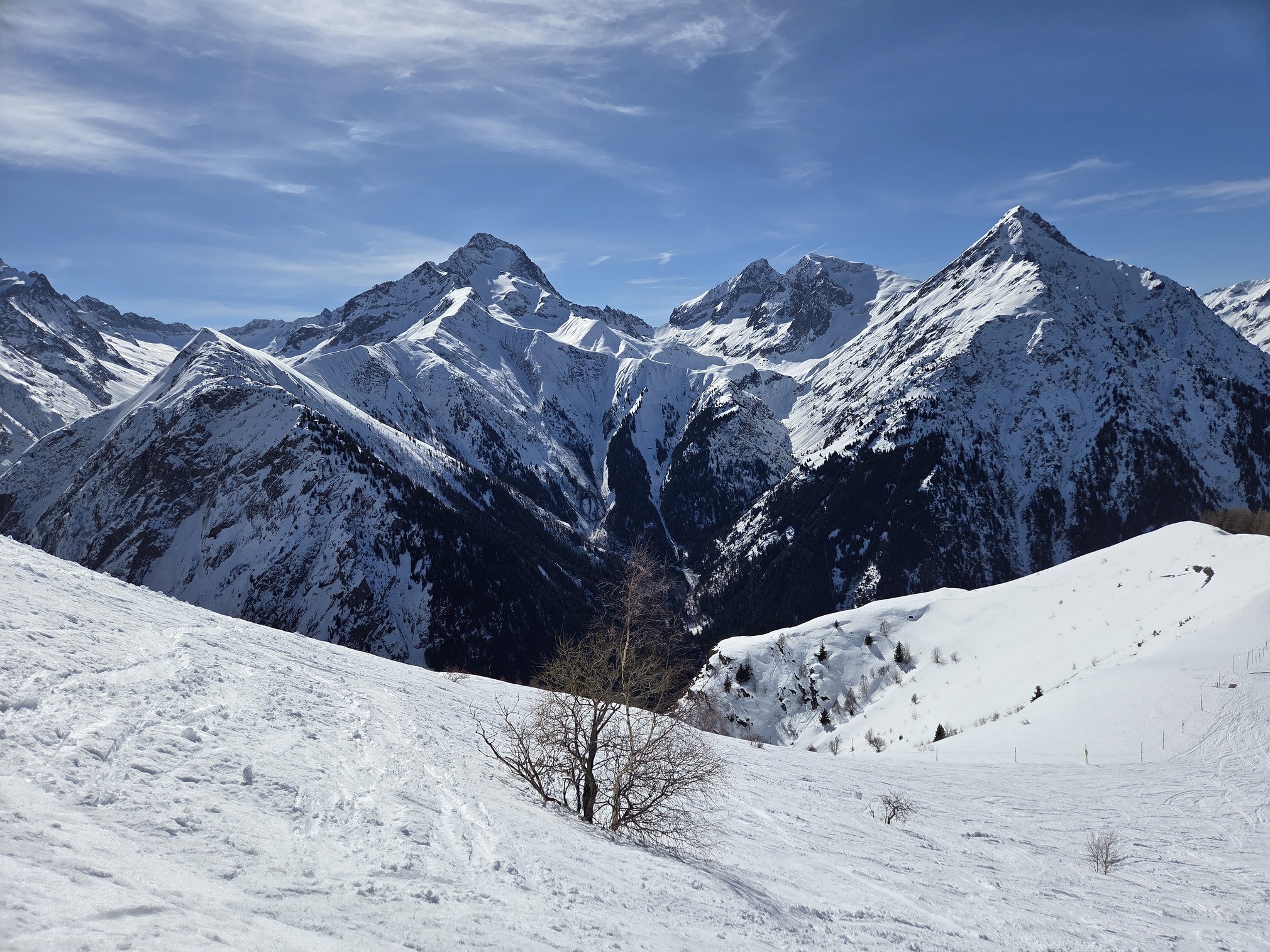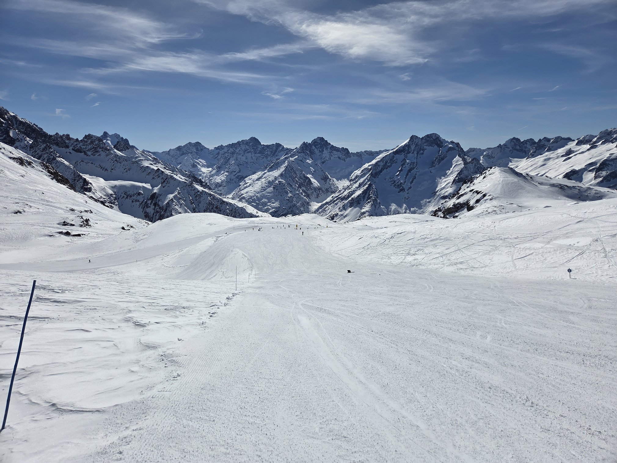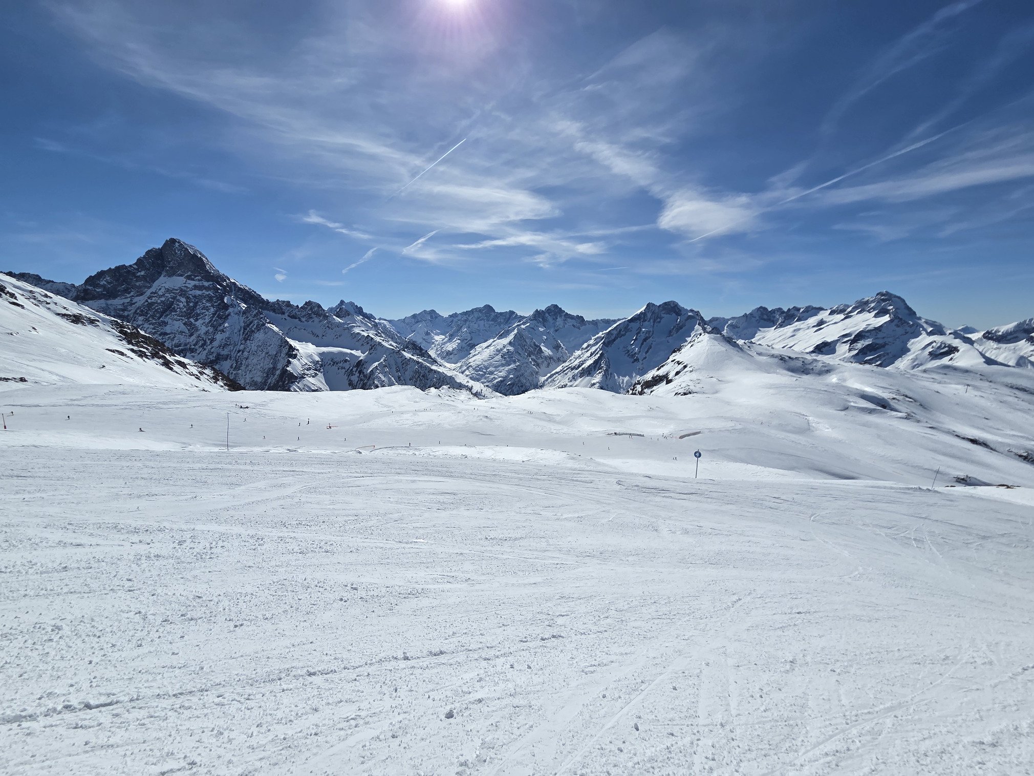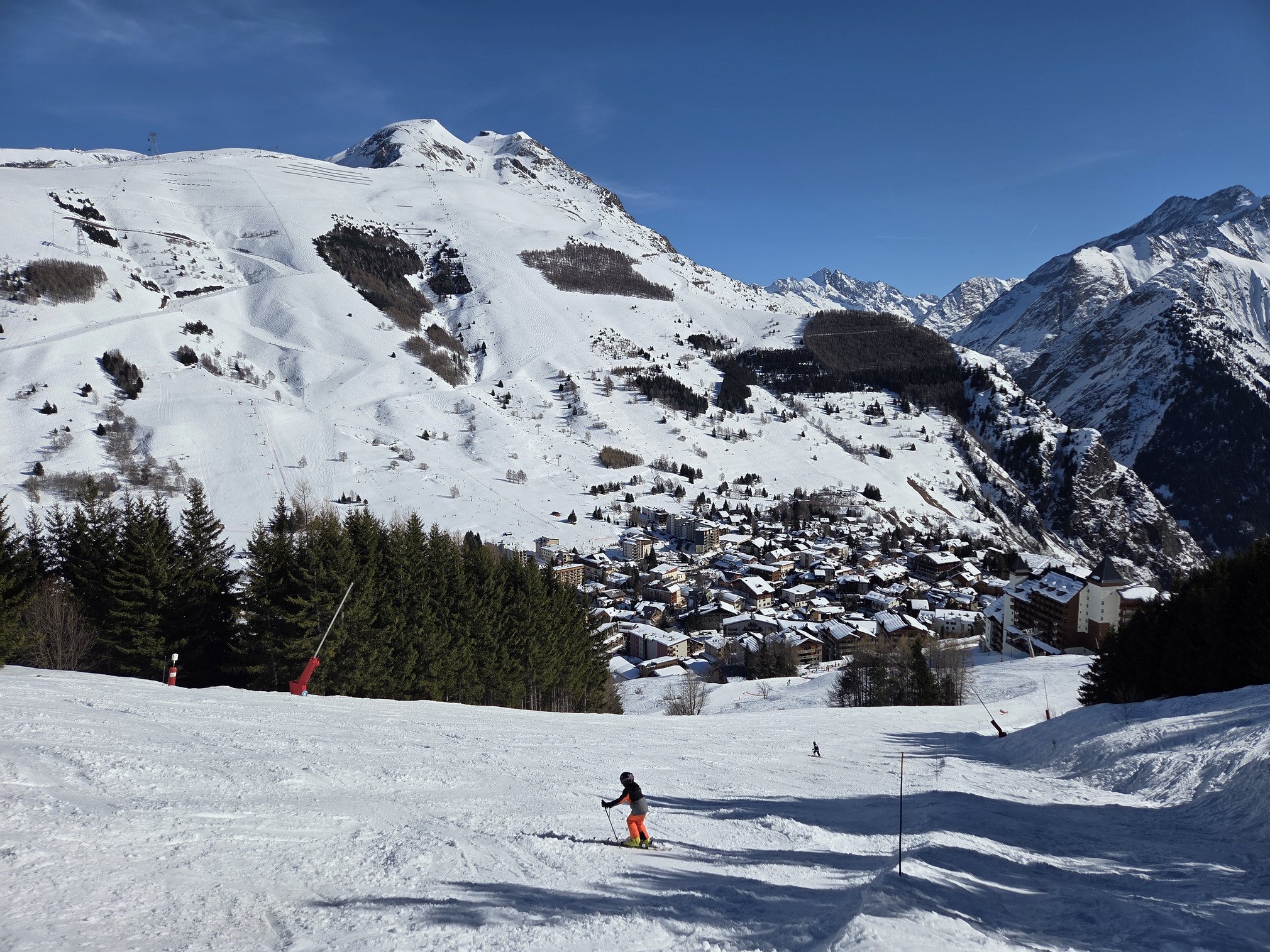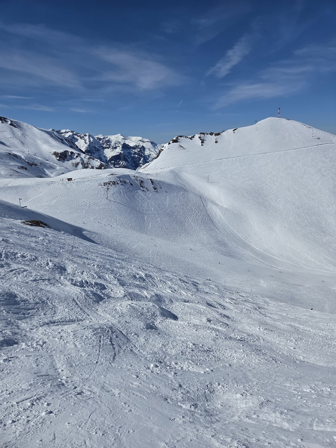 On est presque seule sur la piste, le cerveau a du mal à choisir entre carver comme un cochon ou admirer le paysage...