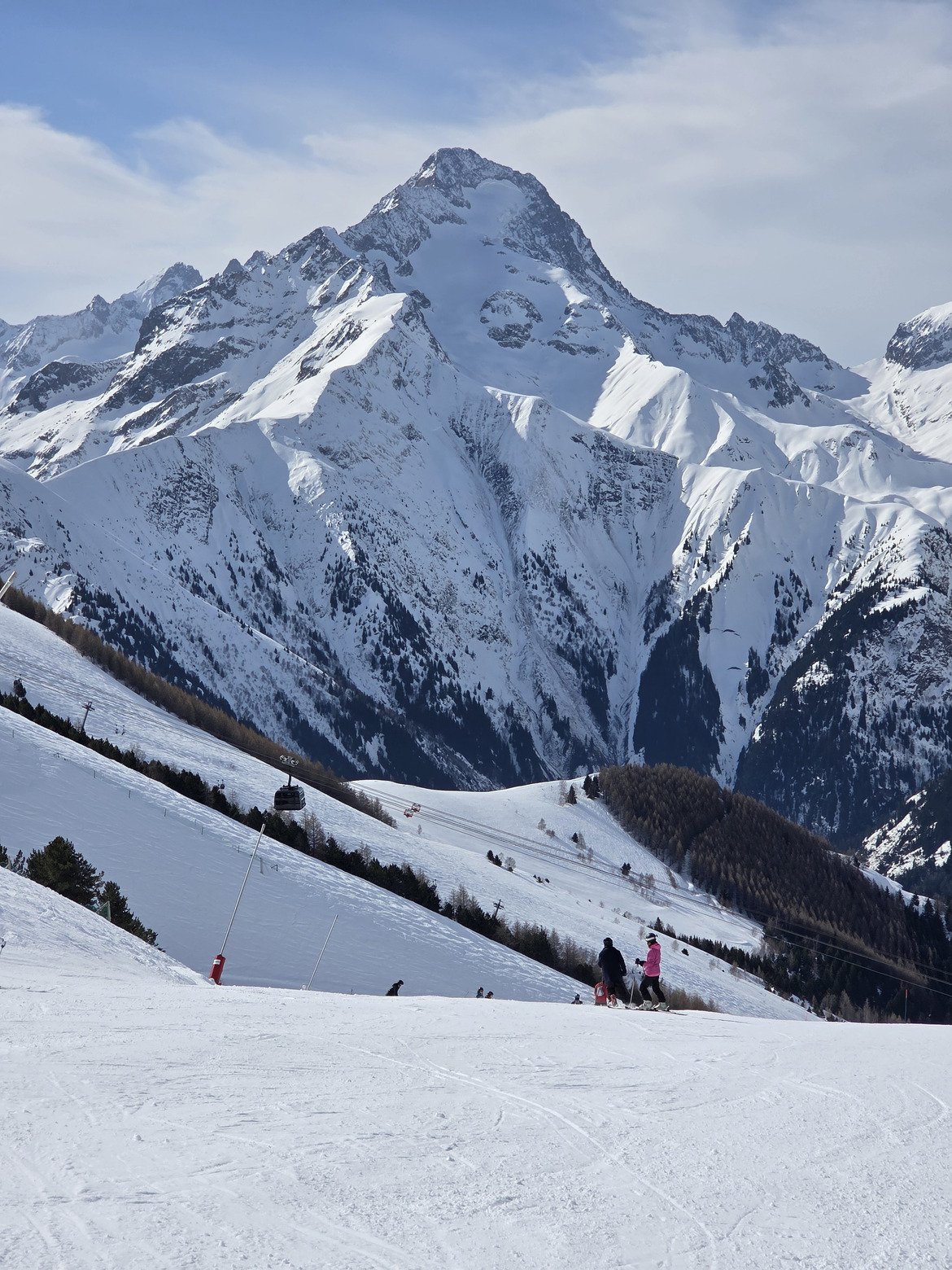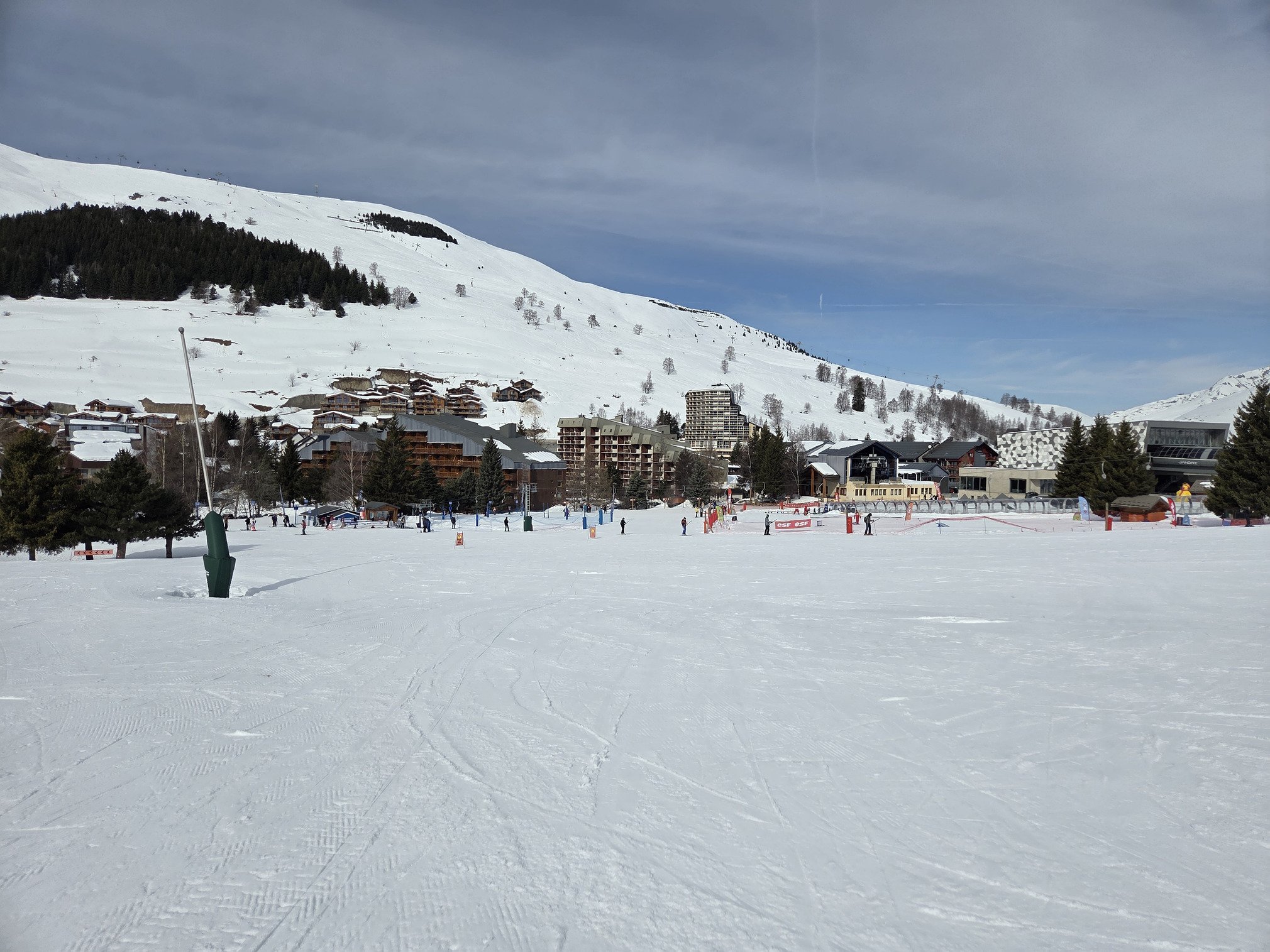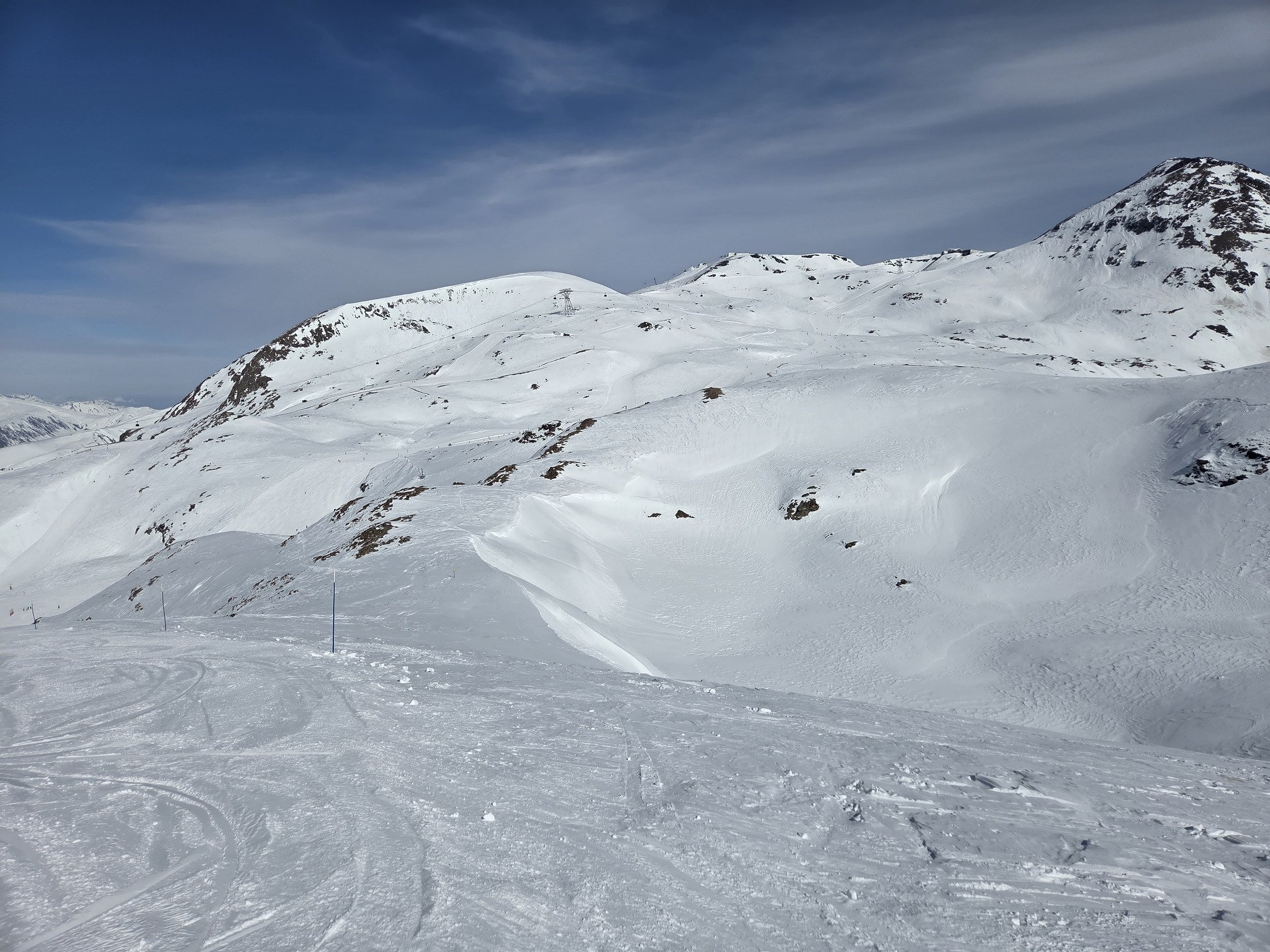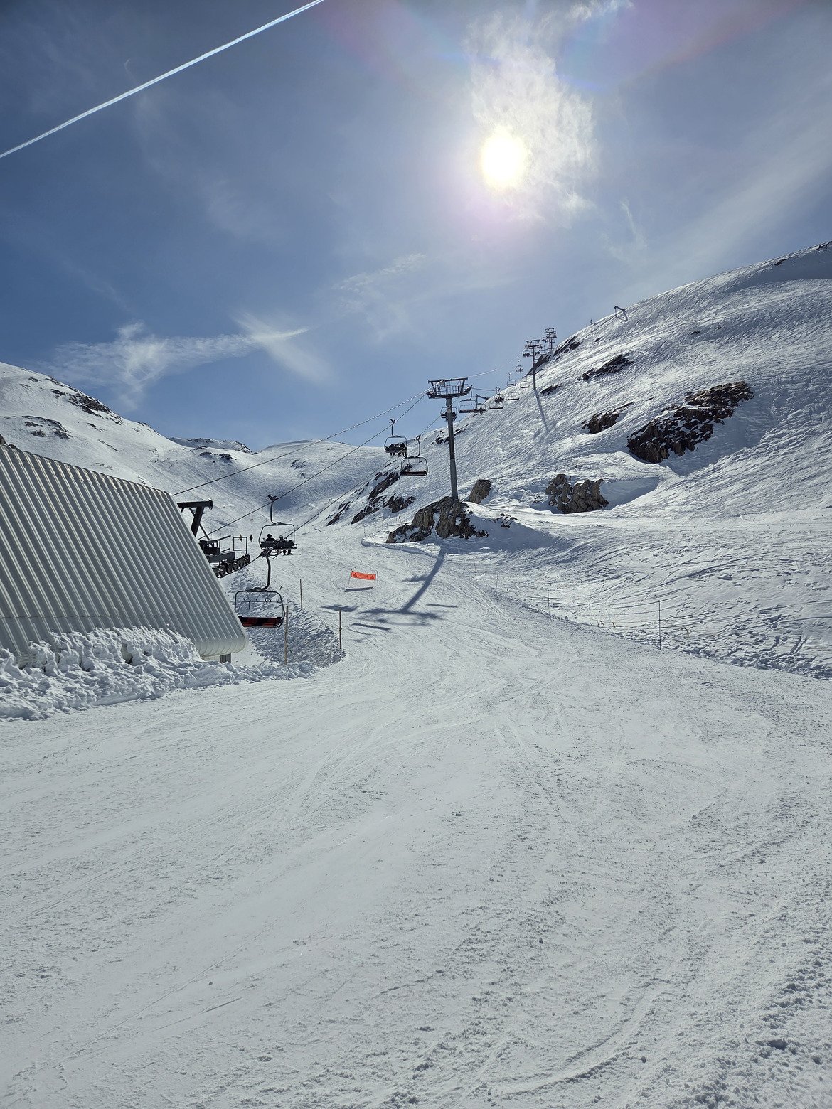 Départ 10h30 avec chérie blinkette et mini blinkette, on commence par Jandri 1 et Vallons du Diable, les 2 pistes sont dans le même état, très dures, des petites boulettes partout, y a encore les traces de la dameuse.