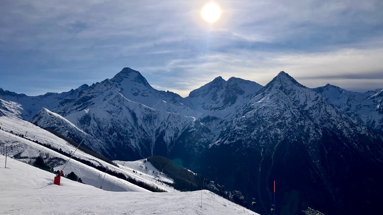 Un petit 80 km de pistes, je ne peux guĂšre plus pour le moment, et finalement, entre le soleil, les 4 couches sur le haut du corps et les gants chauffants..mĂȘme pas froid! đ