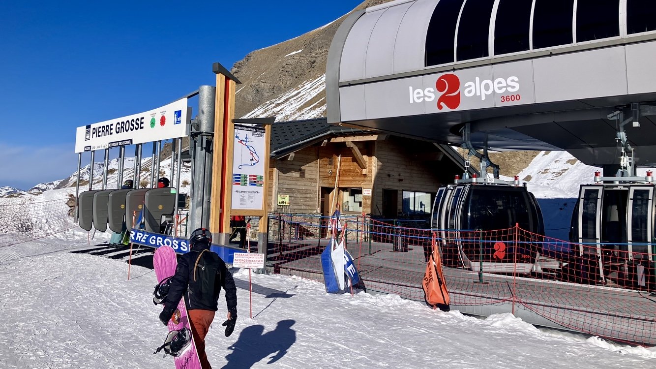 On peut aller sur Venosc, la neige est bonne, absence de cailloux. A la remontée mécanique pas grand monde. On descend sur Vallée Blanche par la verte, elle est nickel. On fait 7 rotations avant de traverser.