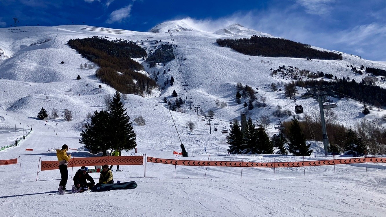 Direction le Thuit, il est parfait, bien lisse, et la neige parfaite, alors carving! On remonte par les crêtes pour refaire le Thuit. Direction Bellecombe 1. Je dis que ce n’est pas une bonne idée, on va avoir le vent pleine face qui remonte du Thuit! Les moniteurs n’emmène plus les enfants, car ils tombent!