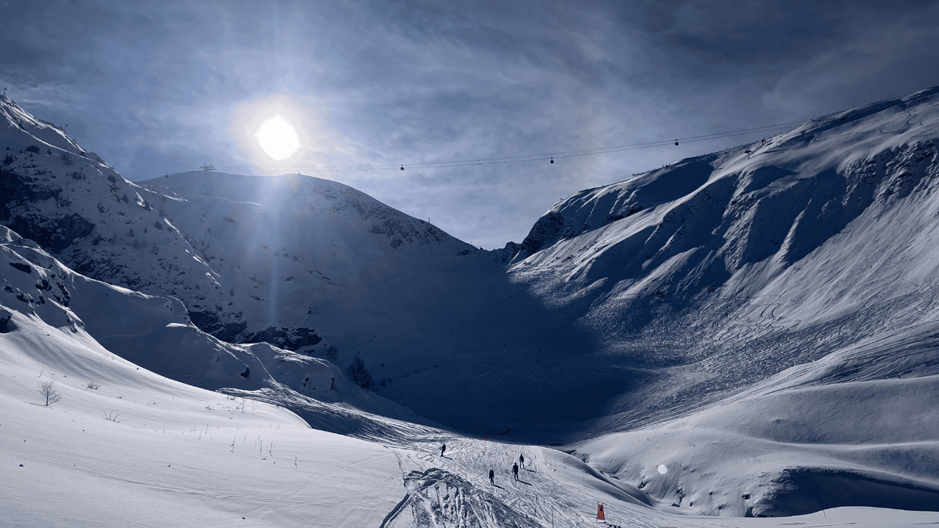Je rentre par la Valentin, câest la plus belle piste de la journĂ©e. TrĂšs peu de bosse, et une bonne qualitĂ© de neige.