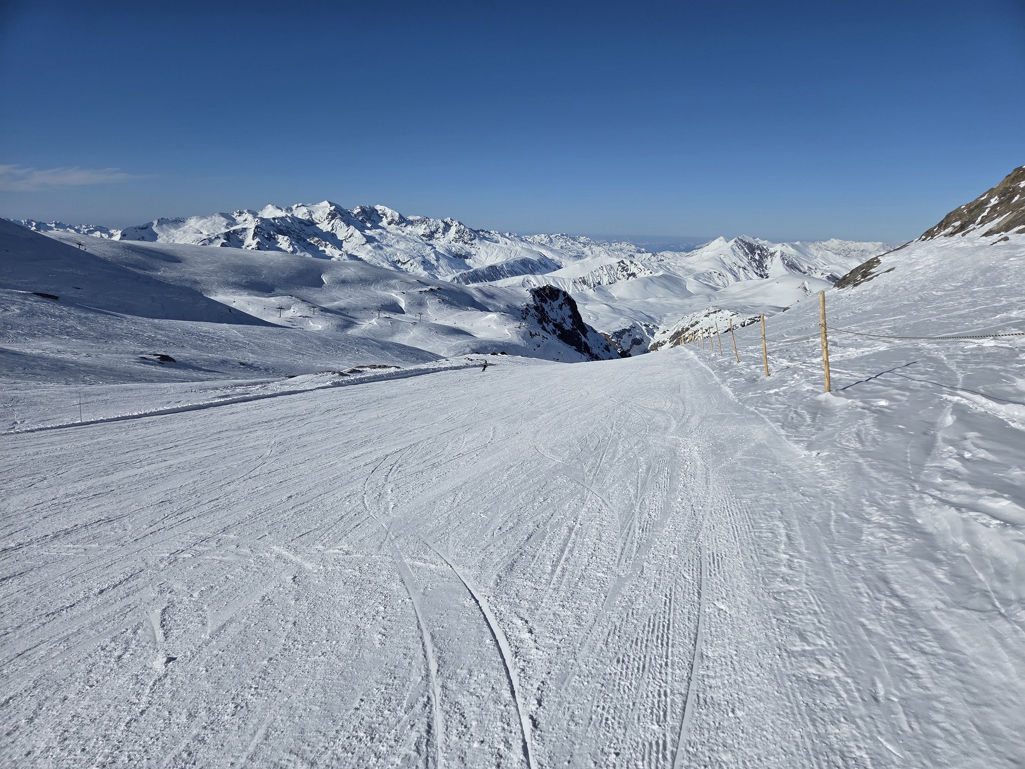 On remonte par Diable, il était plus tard il y a 2 jours lorsque l'on a fait le bas du Thuit. On regarde avant de descendre le haut du Thuit, le bas semble ouvert, pas de filet tendu, un peu de monde sur le bas de la piste, quand on arrive il y a un pisteur que l'on n'avait pas vu (ou que l'on ne pouvait pas voir), qui empeche de descendre plus bas, tant pis.