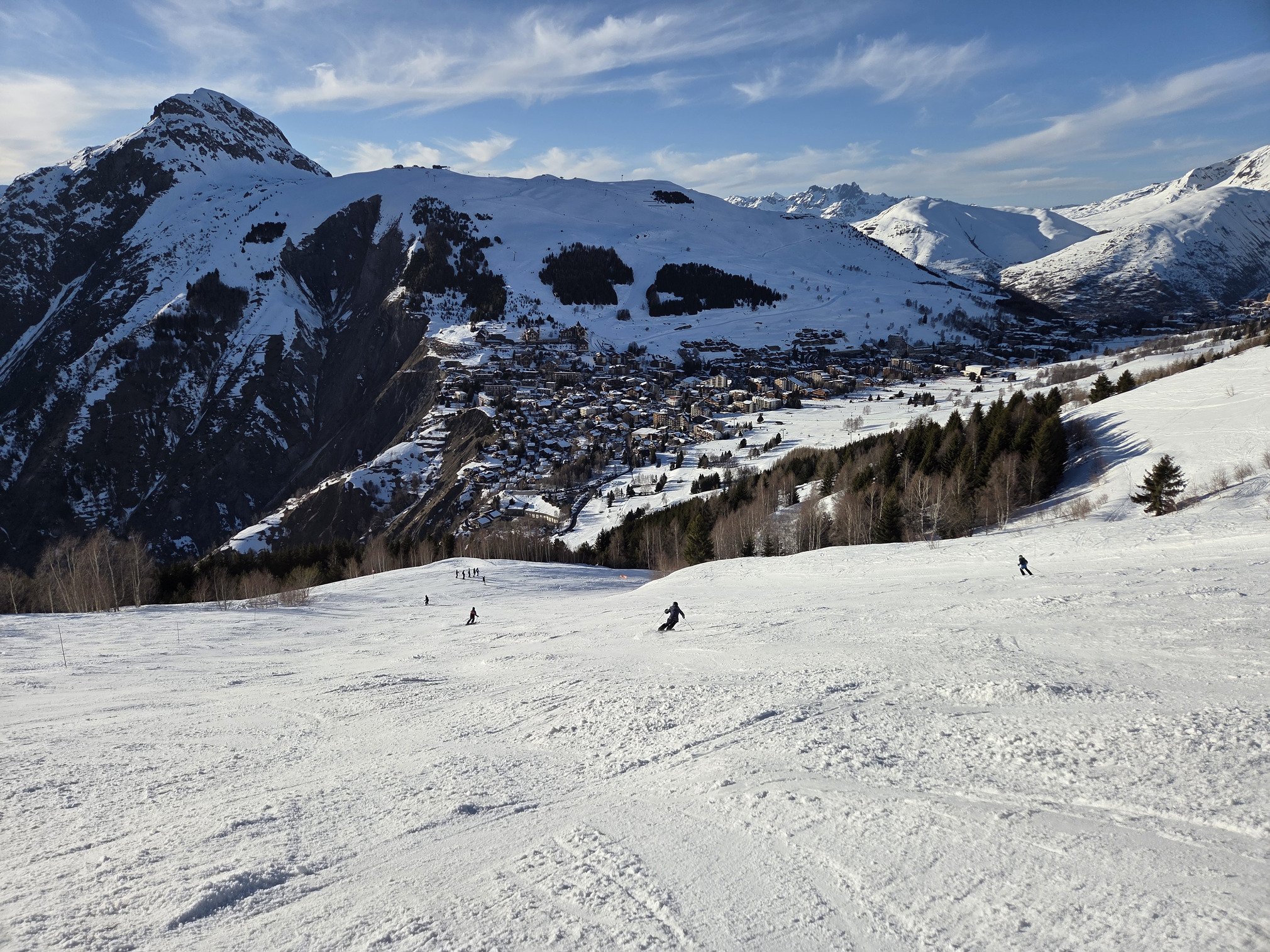 On monte à Bellecombe. Un petit tour sur les pistes Super Diable (bonne) et Vallons du Diable (un peu mou).