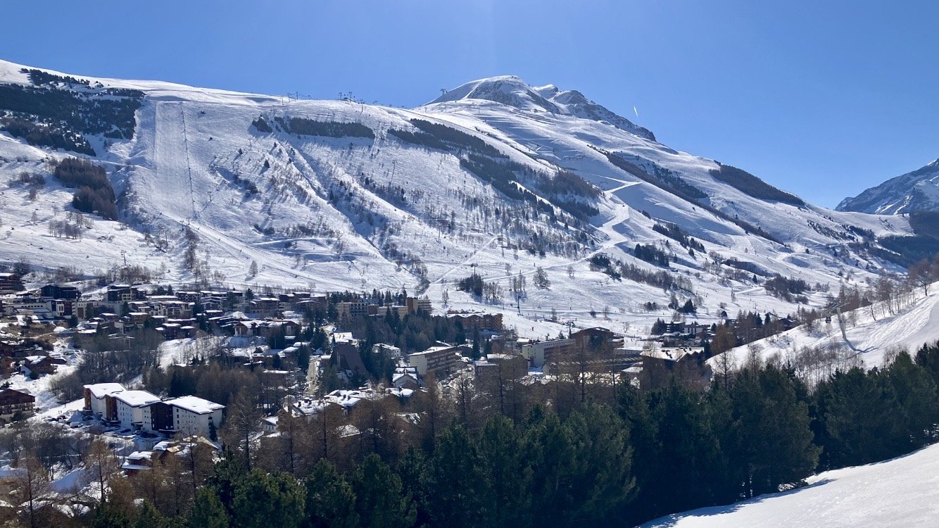 Mauvaise nuit, donc je décolle pour 10h15, côté SuperVenosc. Avec la présence du ciel bleue et du soleil. Mais c est déjà un peu tard car la neige est déjà bien transformée, avec quelques paquets. Je n’aime pas trop. Alors après 3 descentes sur ce versant, je traverse.