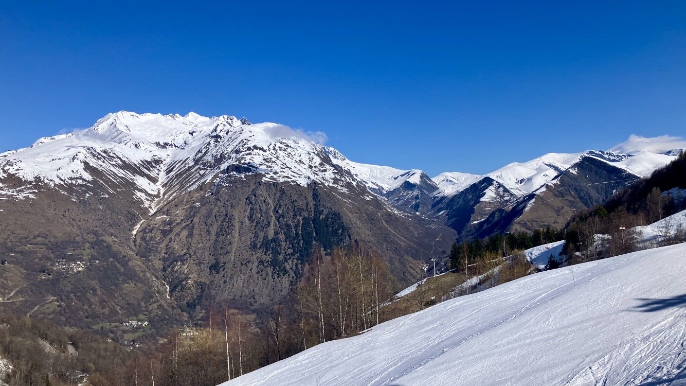 Direction la Toura par le mur de côte rouge et les écrins. Au télésiège, c est fluide. Je descends par la bleue Toura, la neige est nickel, malgré quelques petites bosses au départ.