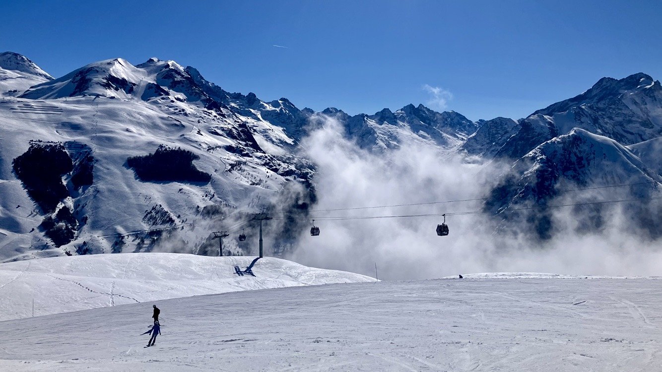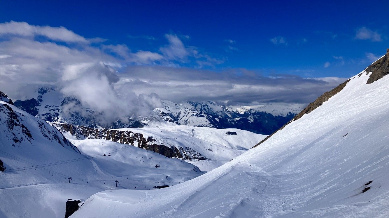Au télécabine c est fluide. Je regarde Chalance en montant, et je vois de snowboarder en haut de la face Nord, assis tranquillement. On ne voit plus le sommet du télécabine. S’aventurer sur Chalance quand les nuages s’y aventurent est particulièrement risqué, j en ai eu fait malheureusement l’expérience.