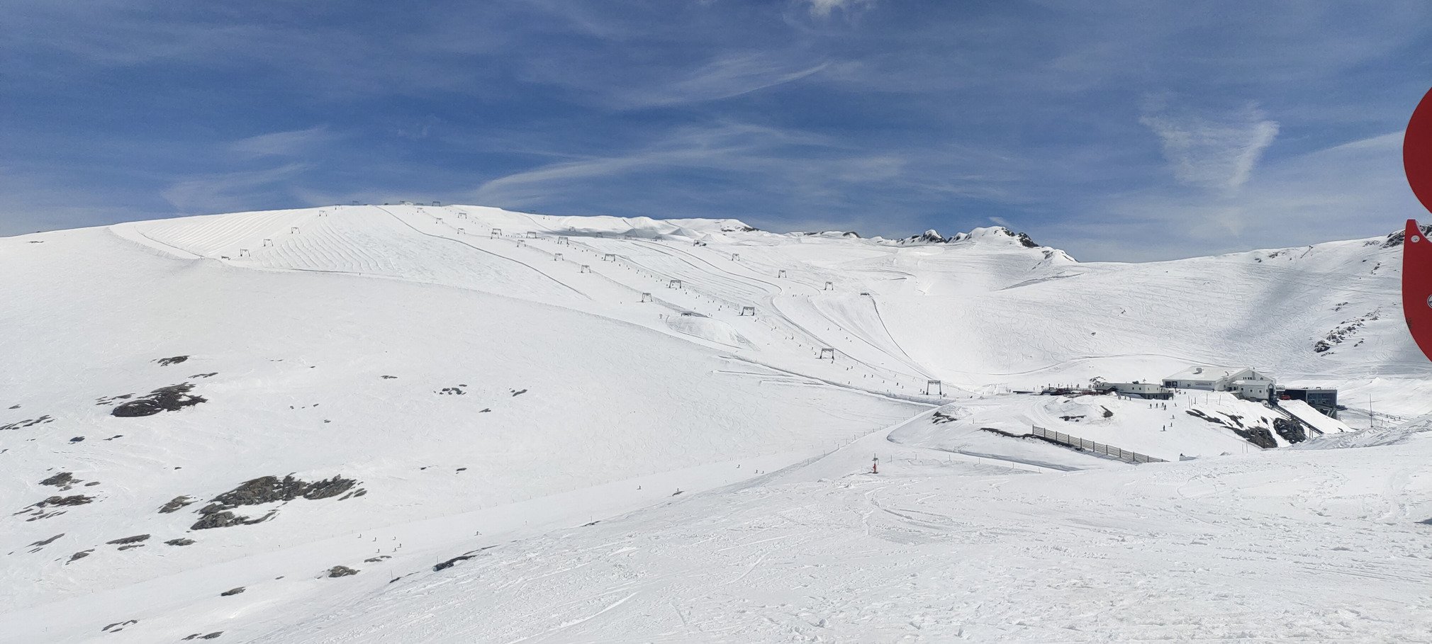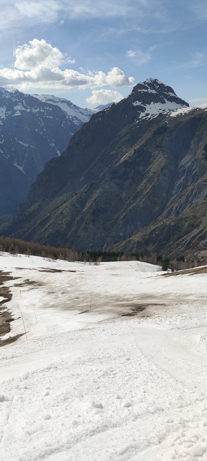 Hormis au-dessus de 2800 m où la neige restait plutôt dure et hivernale sur piste (et bougeait donc peu pendant la journée), on était sur des conditions de printemps classiques : soupe regelée dégueulasse jusqu'à ce que ça décaille, un créneau de ski très agréable (mais très court) quand la neige se détend vers 11h-12h, puis une bonne purge de soupe avec des paquets de neige et quelques coups de frein après.