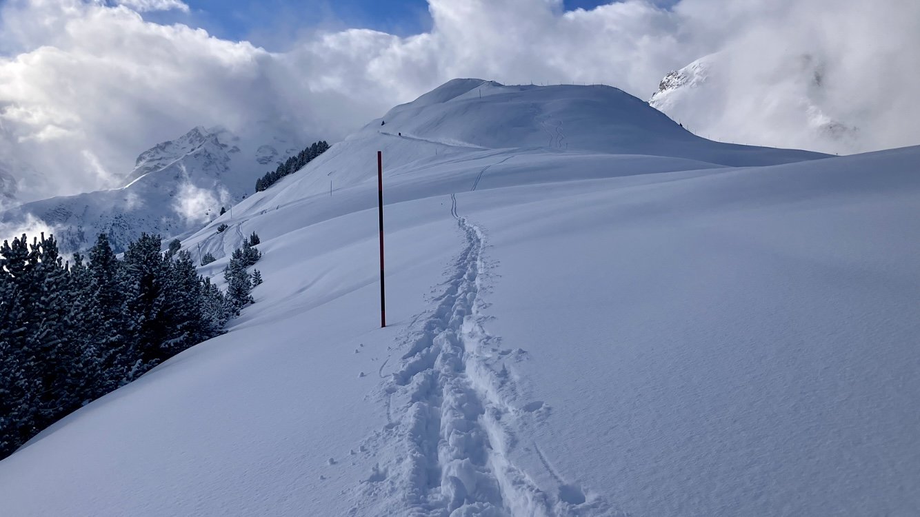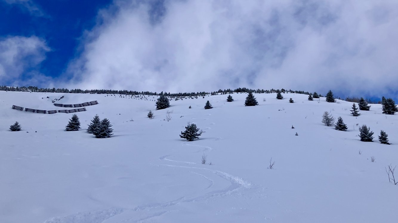 Première trace, qui sera suivie par de nombreuses autres. Il suffit de se décaler de quelques mètres pour tracer de nouveaux.