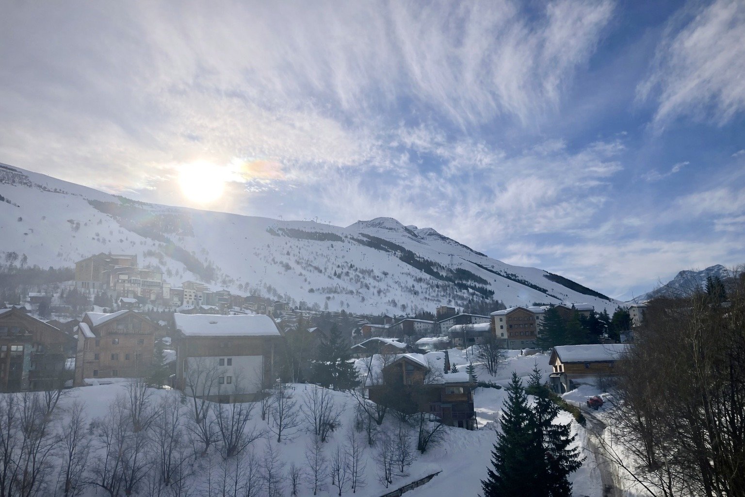 Super samedi, une frĂ©quentation trĂšs basse sur le domaine, une mĂ©tĂ©o bien plus attrayante que celle annoncĂ©e par lâapplication 2 Alpes( elle est souvent dans les choux đ€Ș) puisque le soleil, parfois voilĂ©e , mais toujours prĂ©sent, nous a accompagnĂ© durant notre sortie. Un petit 100 kms, pour 11.000D en rentrant pour 14h30.