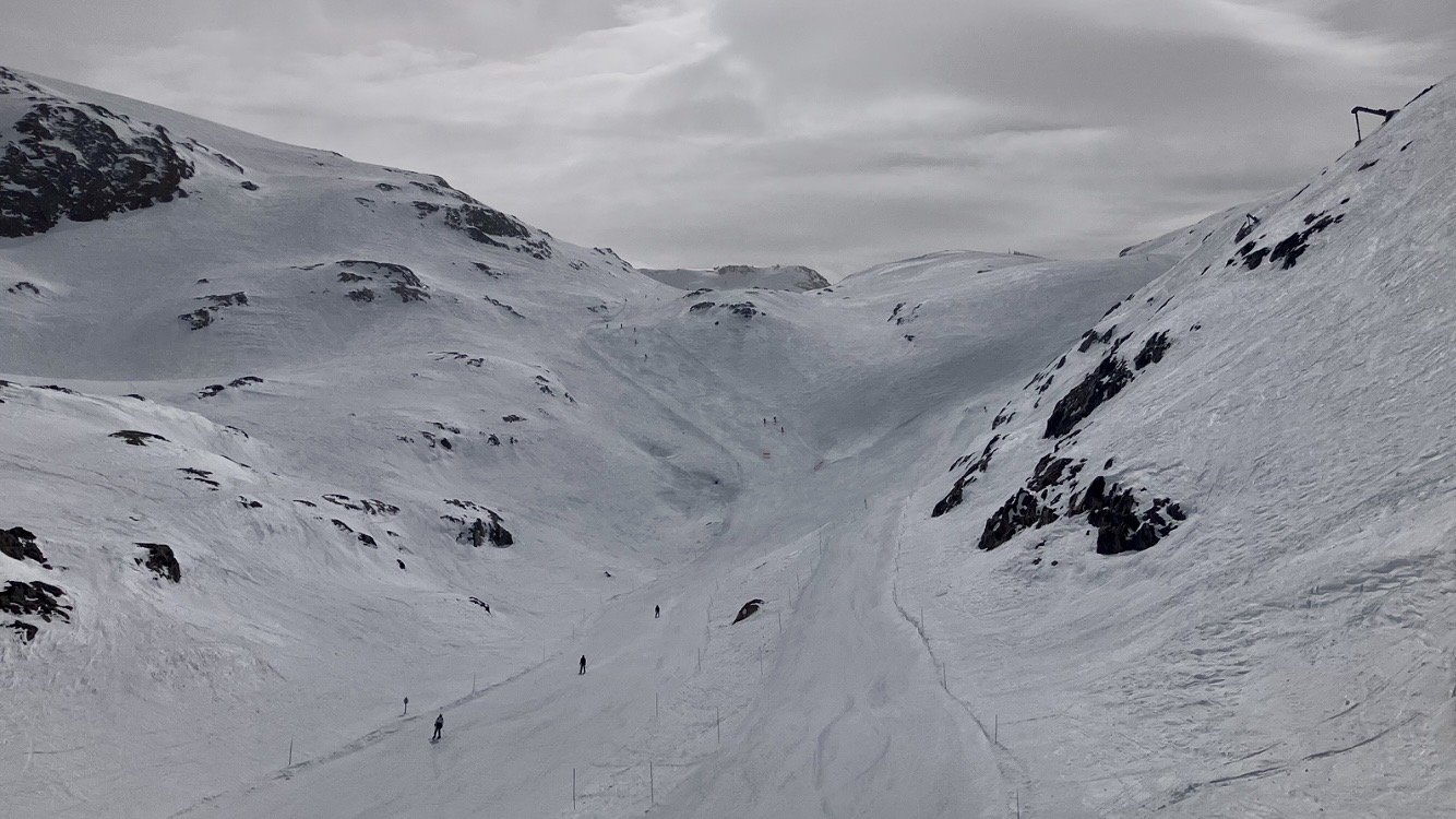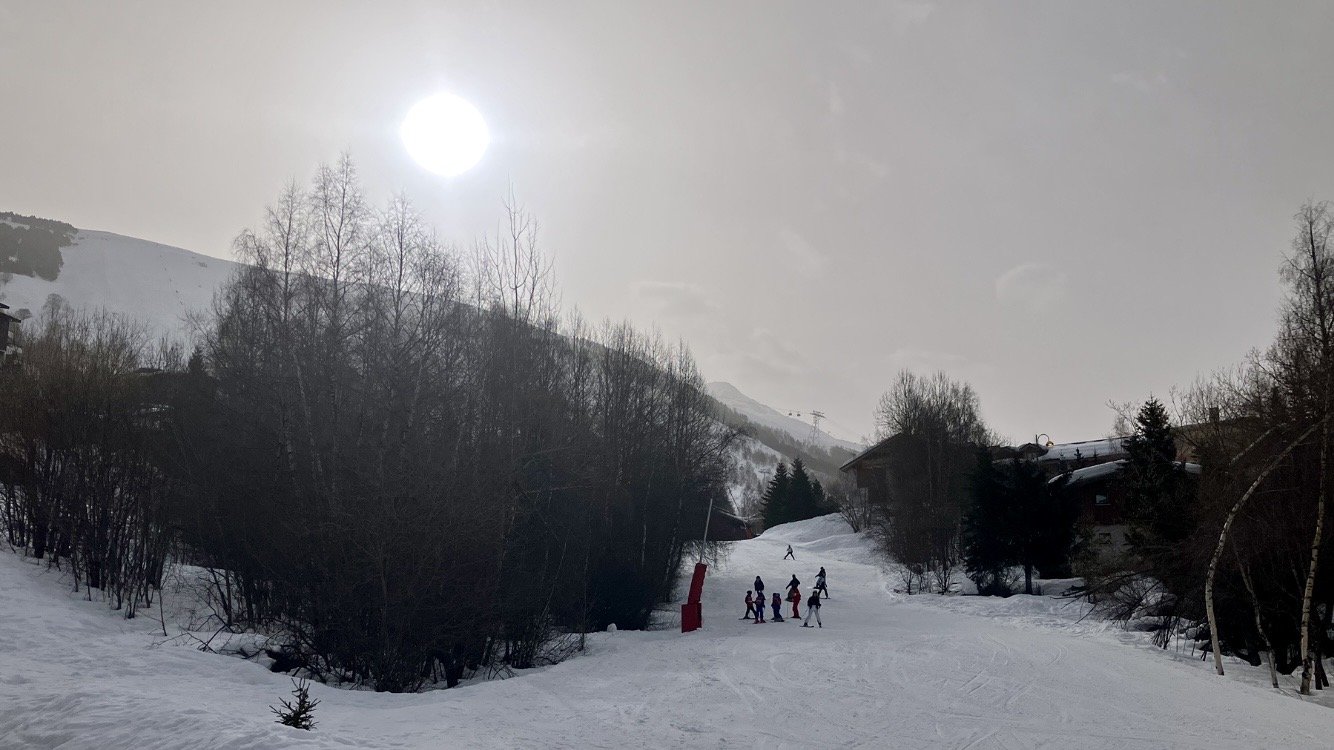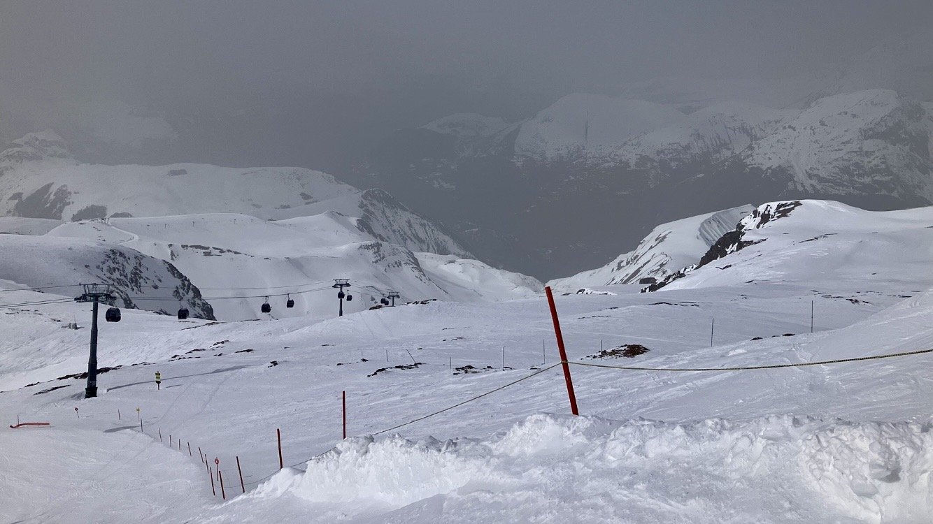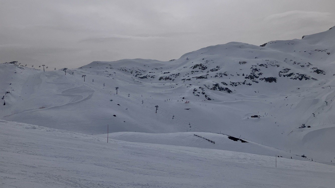 On descend par la Jandri 1 pour aller chercher le 3S. La piste bleue est déjà bien chamboulée. On voit aussi par ci par là de la terre. En fin de journée, elle sera bien destroy😩