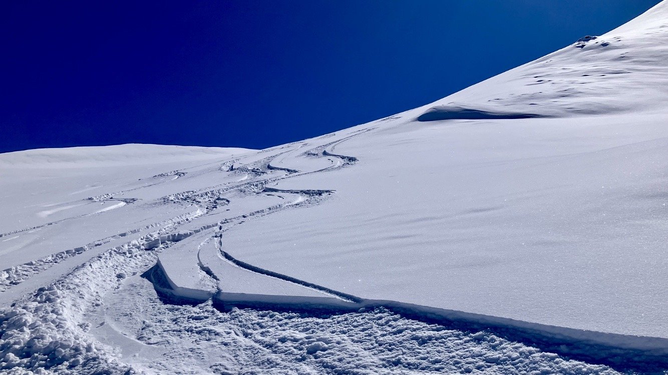 Dans Pierre-Grosse, on peut voir deux traces sur la combe interdite . Comme on est deux, je dis Ă mon collĂšgue, câest le moment, le haut sera short, mais bon, tranquille đ. Alors on y go!