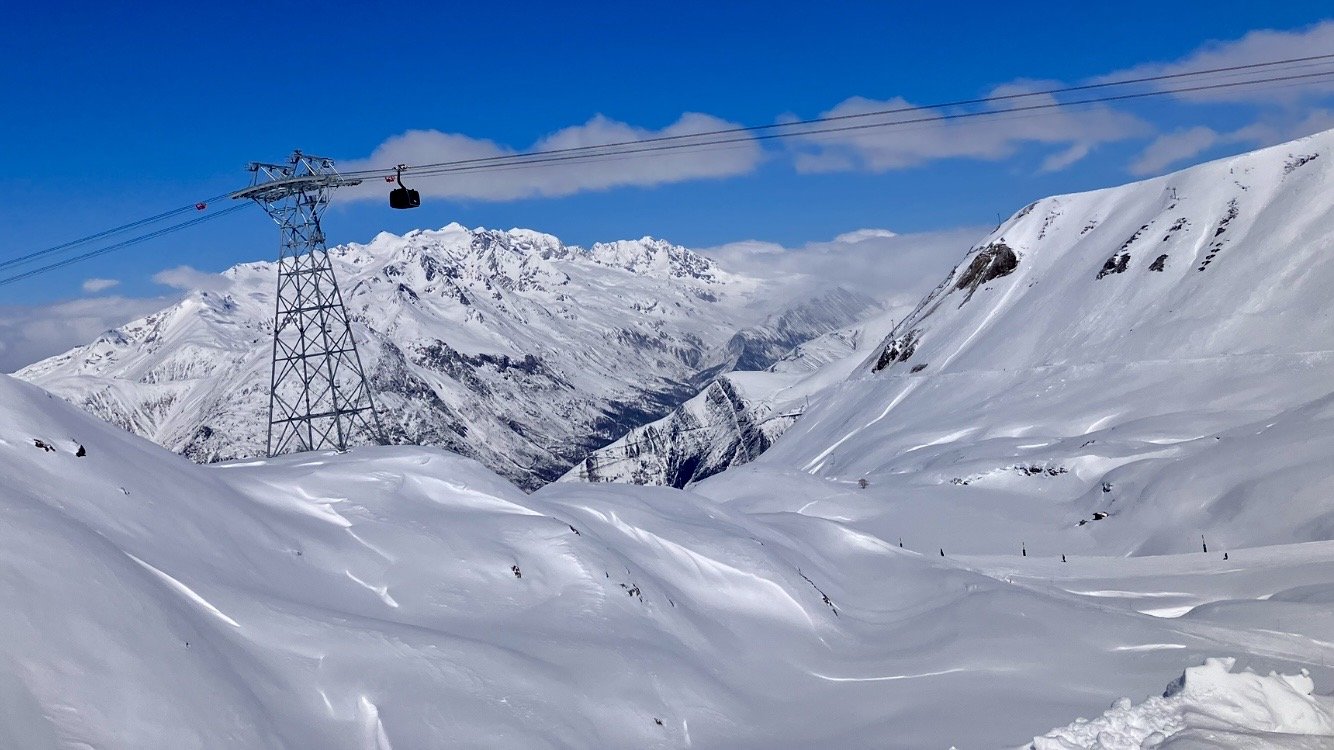 On commence par la Valentin, elle est bien, puis télémix de Belle-Etoile. Direction le diable par la Jandri 1 et la diable bleue. La neige est très bonne, se méfait quand même, quelques plaques du au vent, et avec les vieux skis, je me fais surprendre une ou deux fois par de la glisse pas totalement maîtrisée🥴.