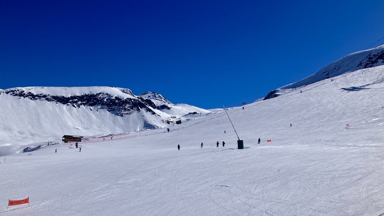 Je récupÚre le Jandri à 2600, je prends la seconde cabine. Au pioches, les deux fonctionnent, c est fluide. La neige est bonne, la température un peu plus à la normale de saison, -4 à 3200.