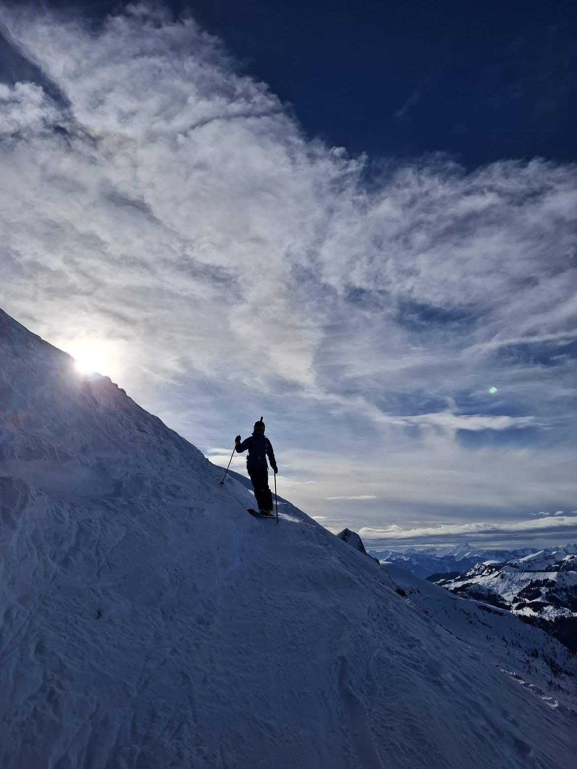 Pour les prochaines descentes, on a opté pour les terrasses du départ du Sex Rouge pour éviter ce couloir soufflé, et bonne surprise, la neige était bien meilleure. La traversée jusqu’au Black Wall était par contre bien dégueulasse, donc il fallait être prudent.