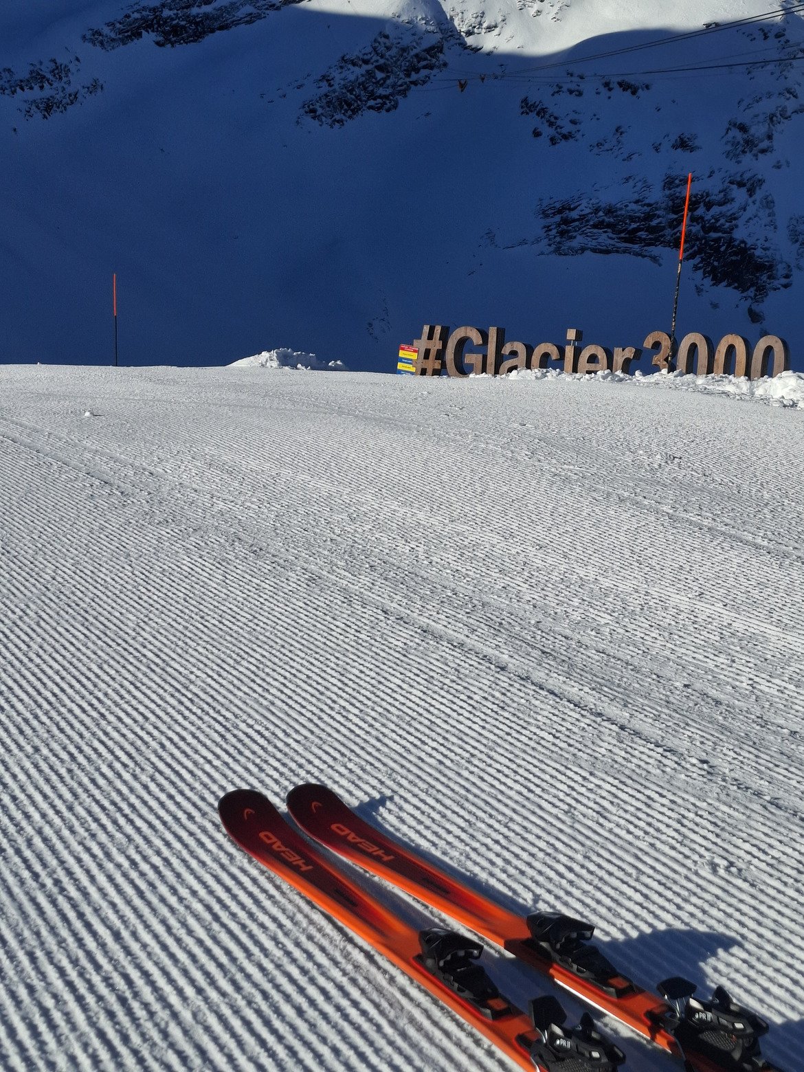 Étant déjà venu mercredi, je sais que les conditions ne seront pas extra en freeride, car ça a beaucoup soufflé et la forêt avait déjà été quasi entièrement tracée. Donc j’ai pris les Head Discovery pour me chauffer sur la piste avant d’attaquer notre programme de la journée.