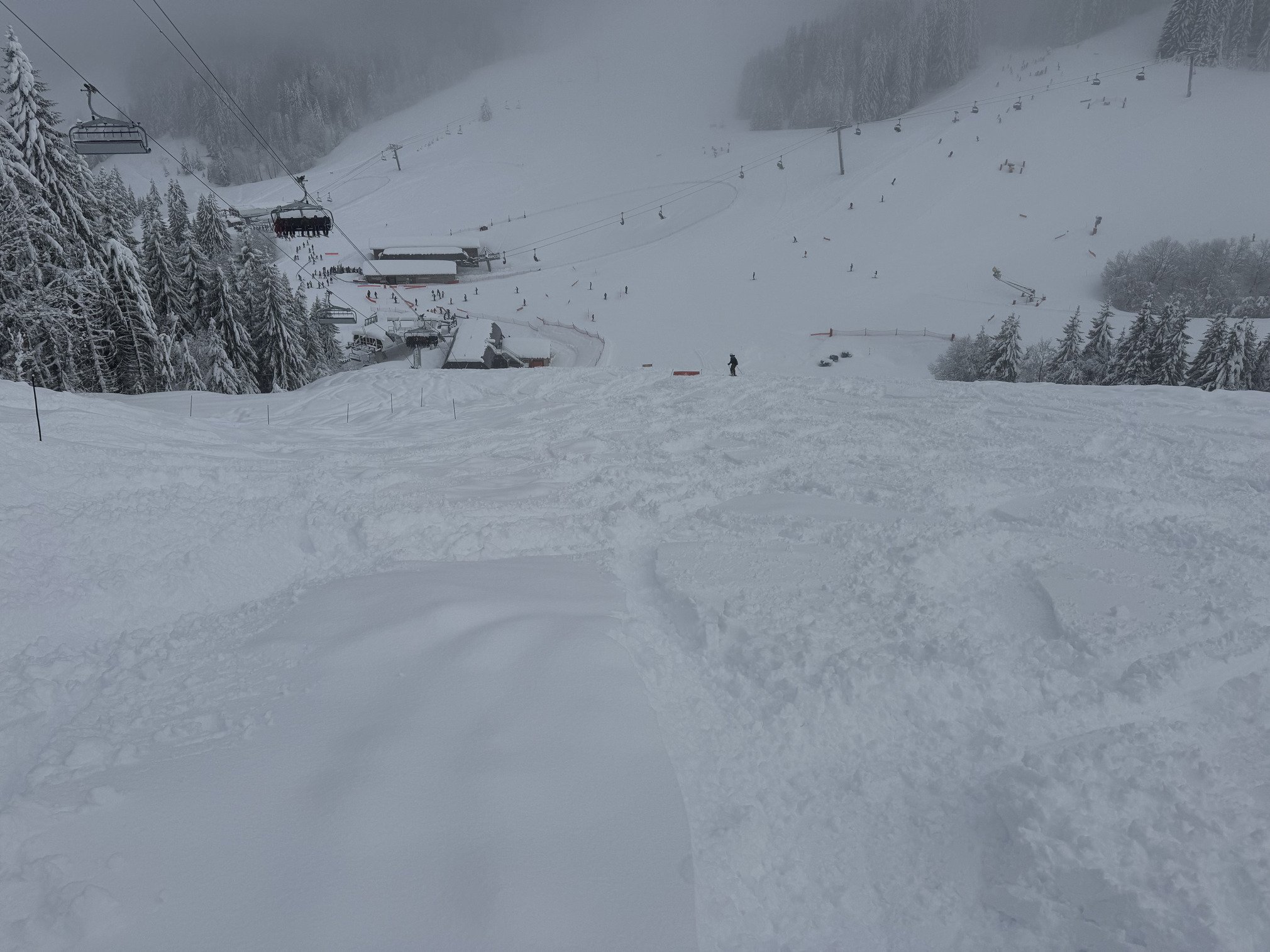 Quantité de neige impressionnante à partir de 1400m, ça fait plaisir à voir, c'est magnifique.